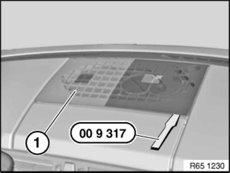 Unclip trim (1) with special tool 00 9 317 from catches and remove towards top.