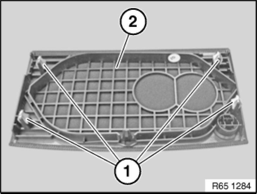 Retainers (1) on speaker trim (2) must be correctly seated on associated lugs and must not be damaged.