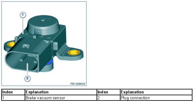 The brake booster is equipped with a vacuum sensor to help ensure that adequate brake-application force will remain available under all conditions. The brake vacuum sensor is located next to the brake booster, to which it is connected by a separate line.