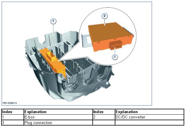 The DC/DC converter is fitted in the electronics box in the engine compartment.