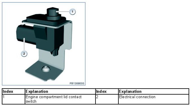 IMPORTANT: When the engine compartment lid contact switch is faulty, the Automatic Start/Stop function will be suppressed. With the engine compartment lid contact switch disconnected, the "switch closed" information is issued. The MSA is active and an automatic engine start can take place.