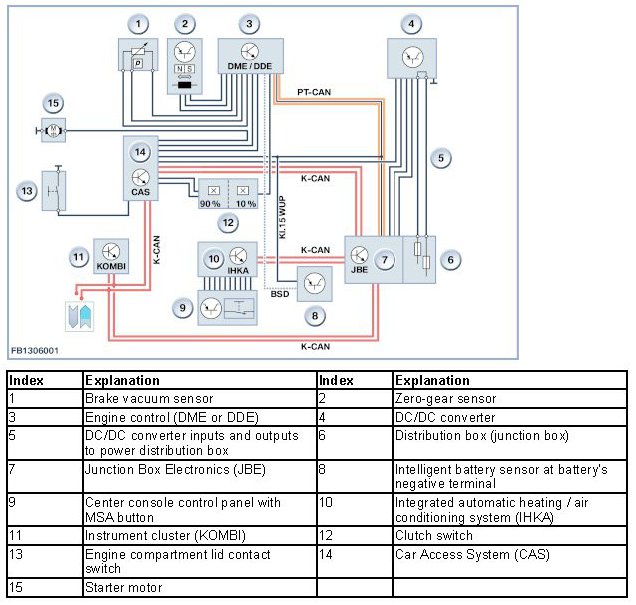 The MSA function is located in the engine electronics (DME or DDE). Various information from the bus systems is used for the MSA. The following components are also required. The following components for the MSA are described: