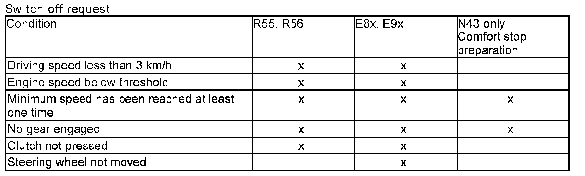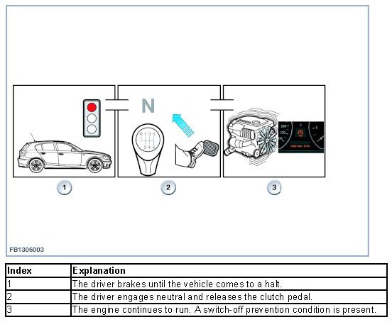 Comfort Stop relies on reduced charge density to prevent the engine from shaking. The Comfort Stop function discharges the air from the intake manifold/plenum chamber (engine continues running for 1 second).