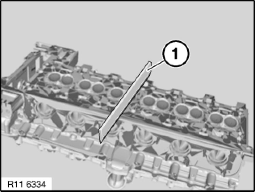 Check evenness of cylinder head sealing faces with a standard straight-edge (1).