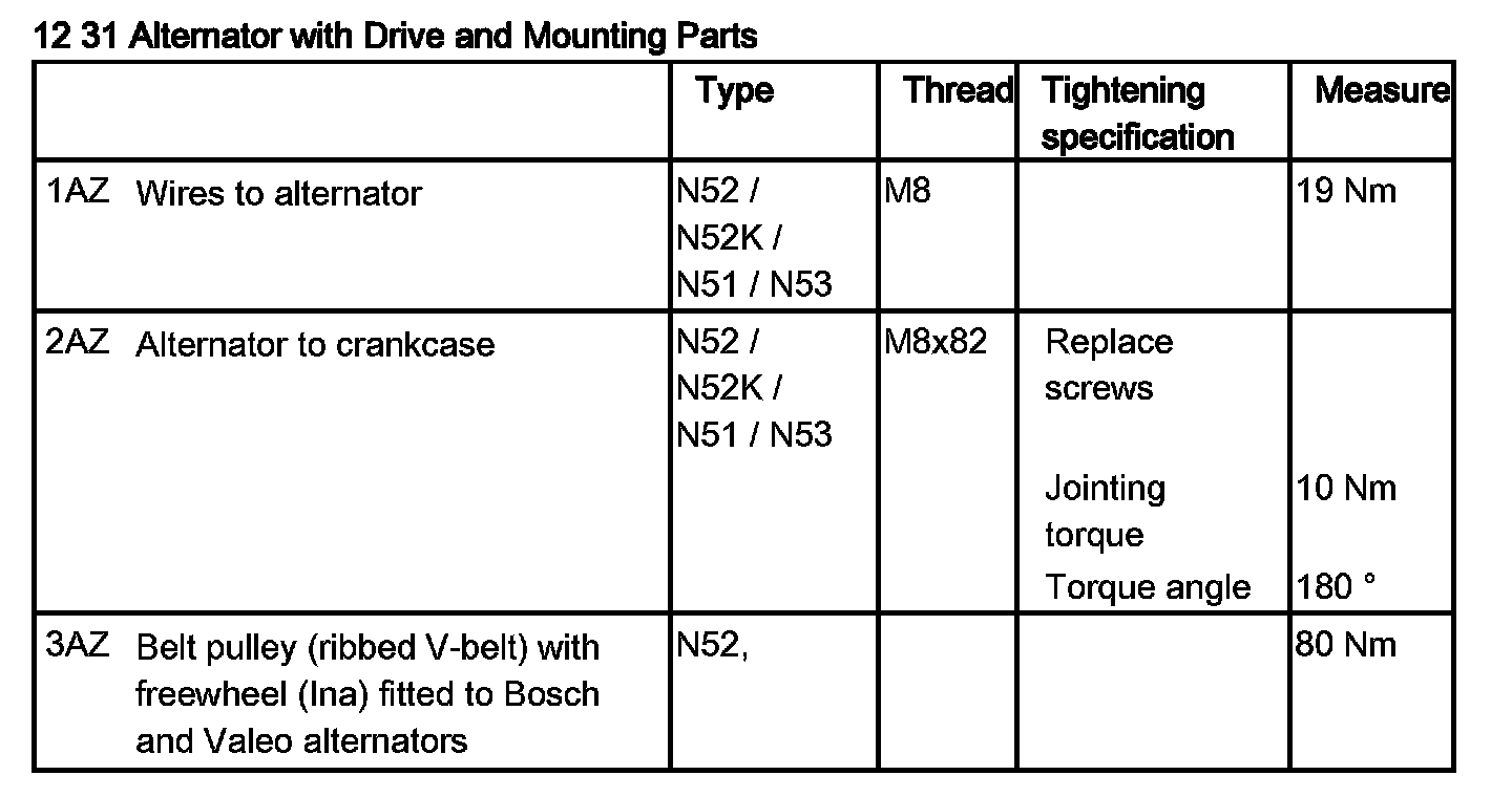 12 31 020 Removing And Installing Or Replacing Alternator (N52, N52K, N51, N53)