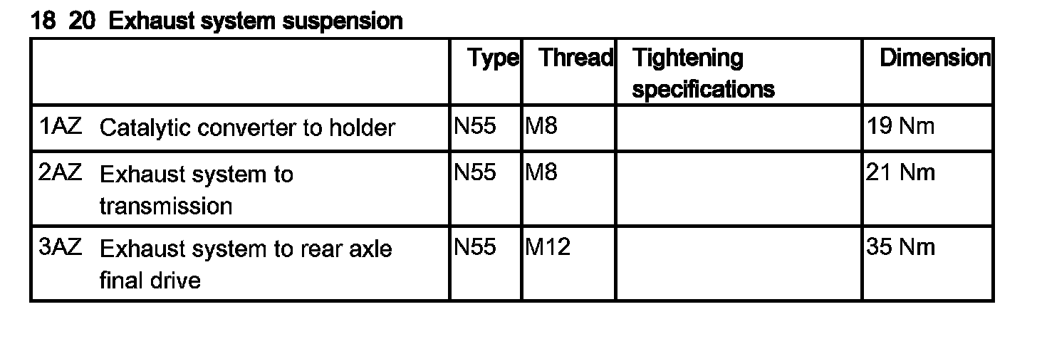 Tightening torque 18 20 1AZ.