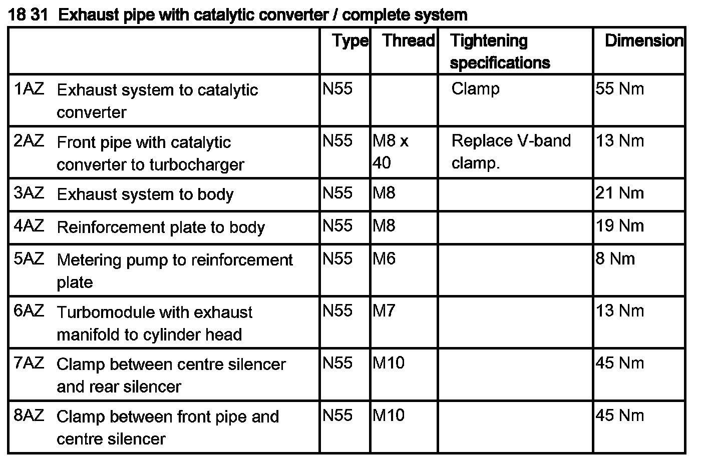 Tightening torque 18 31 2AZ.