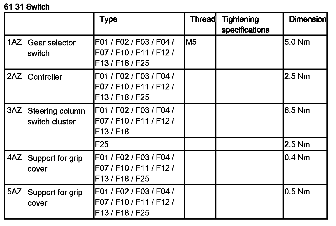 Tightening torque 61 31 3AZ.