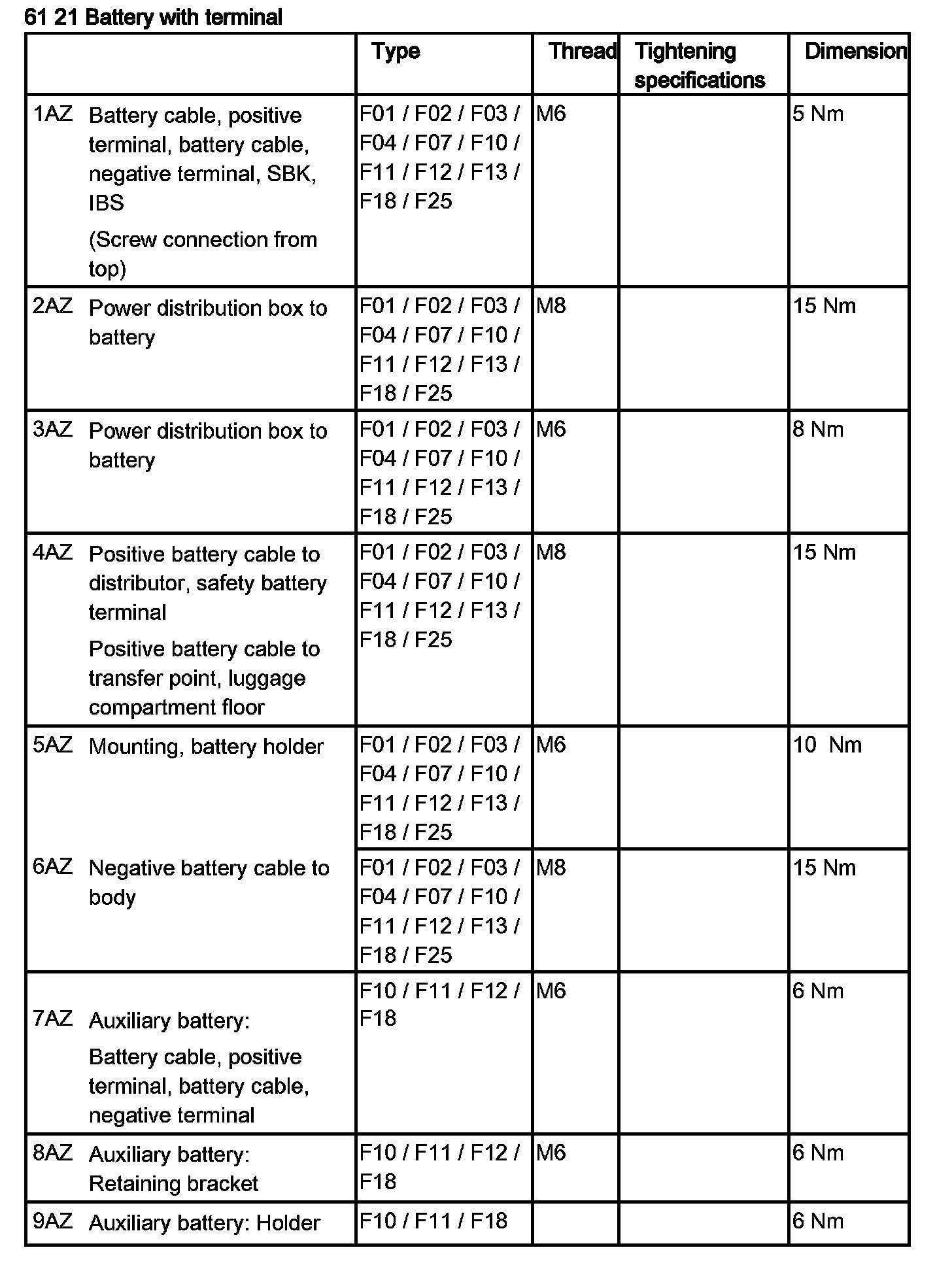 Tightening torque 61 21 6AZ.