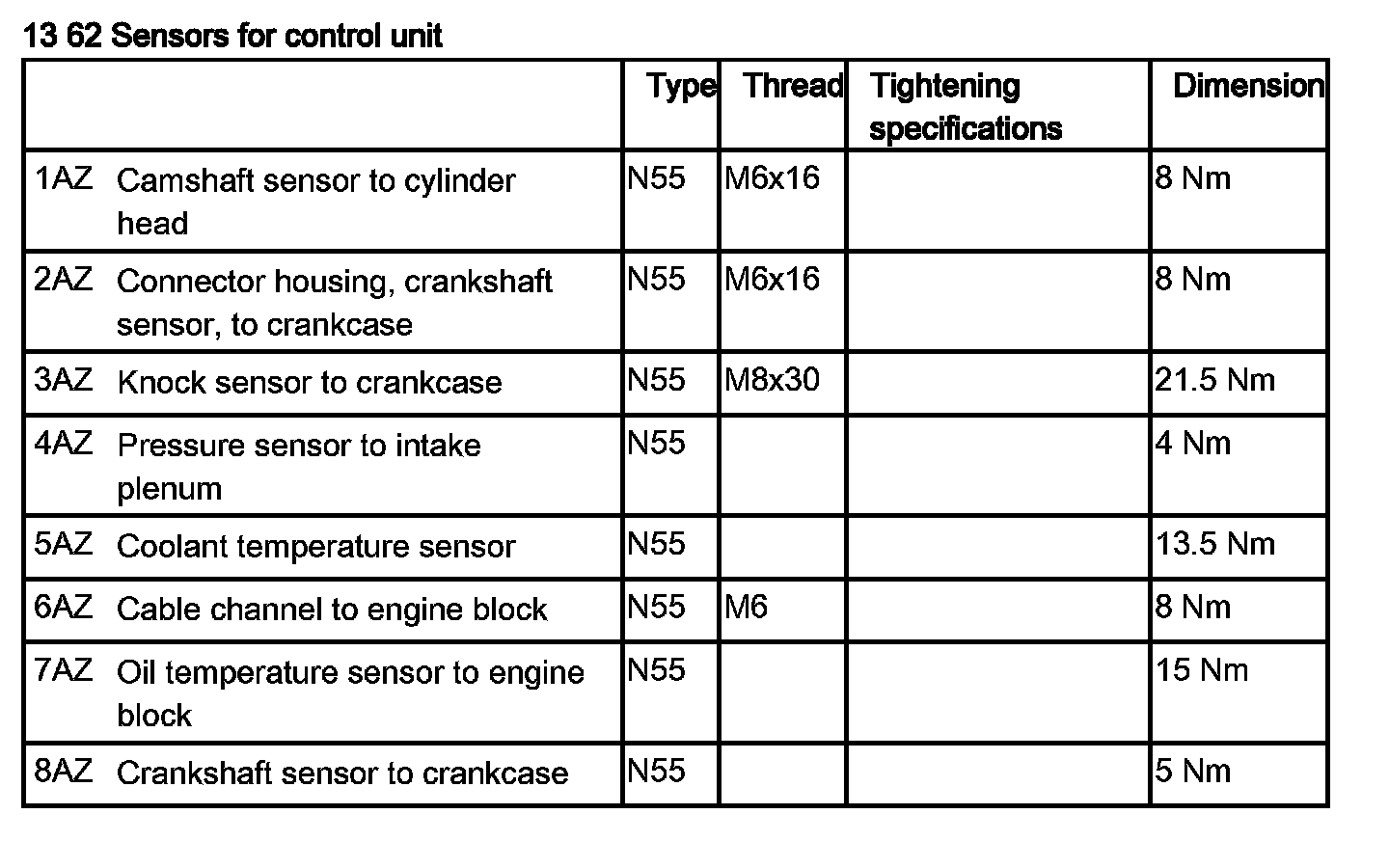Tightening torque 13 62 8AZ.