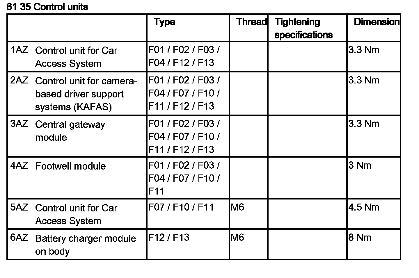 Tightening torque 61 35 3AZ.