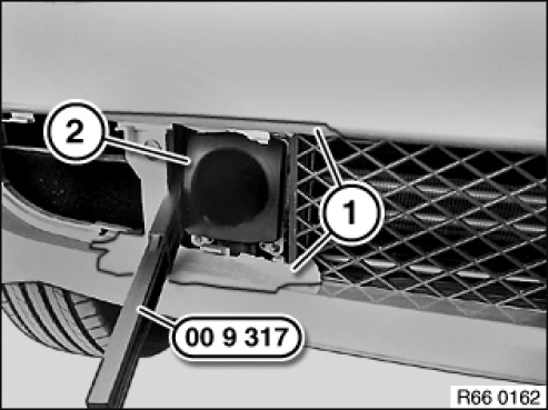 Using special tool 00 9 317 unclip LRR sensor (2) from brackets on both sides.