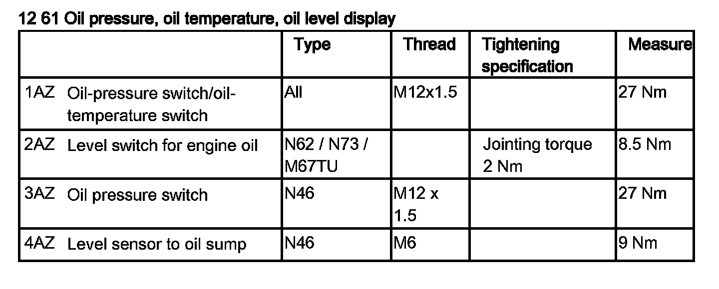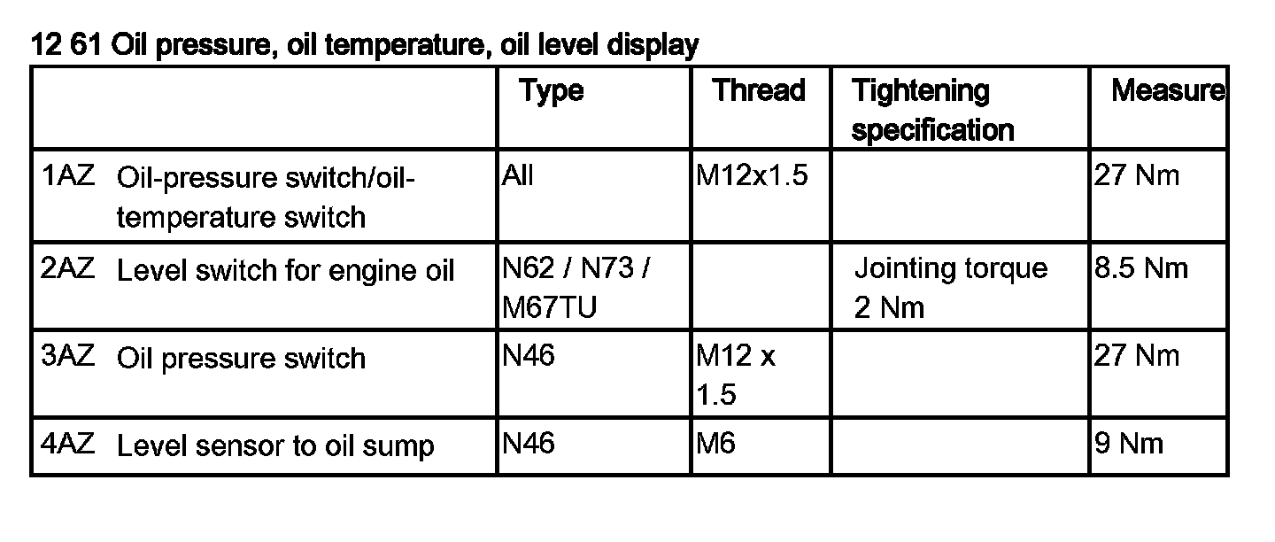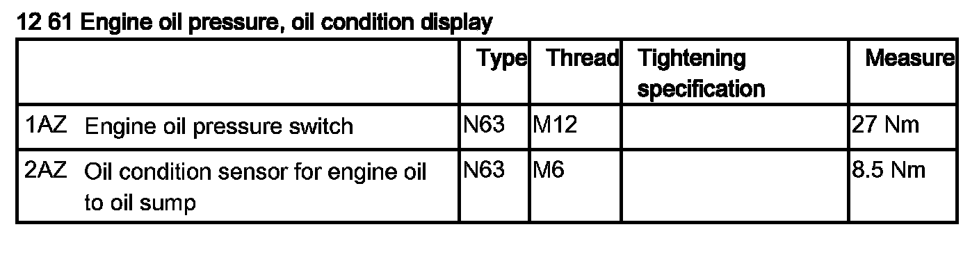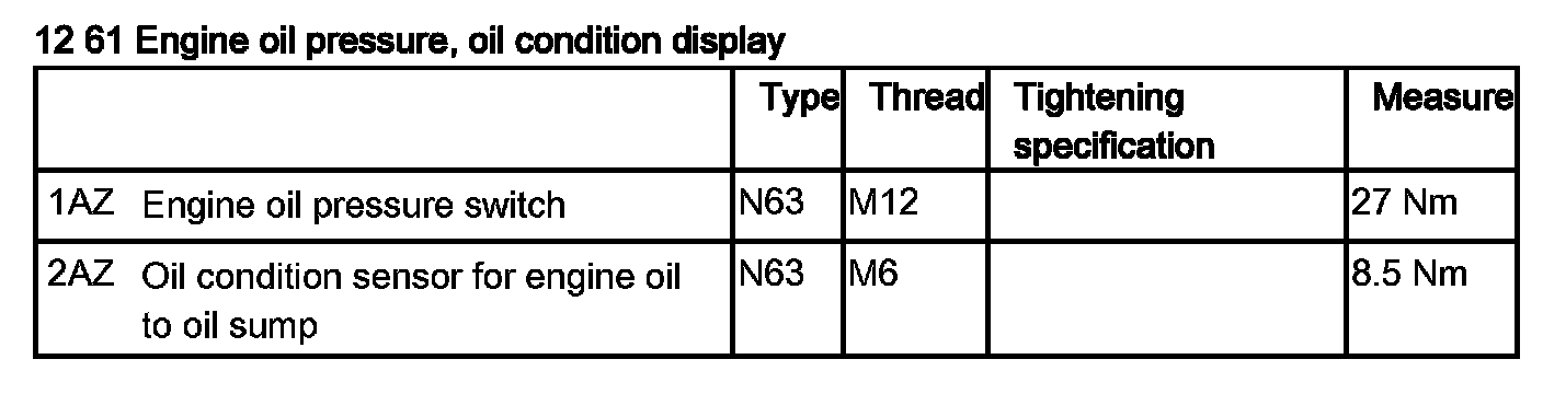 12 61 280 Removing And Installing/Replacing Oil Pressure Sensor (N63)