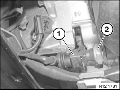 Unlock plug (1) and remove.