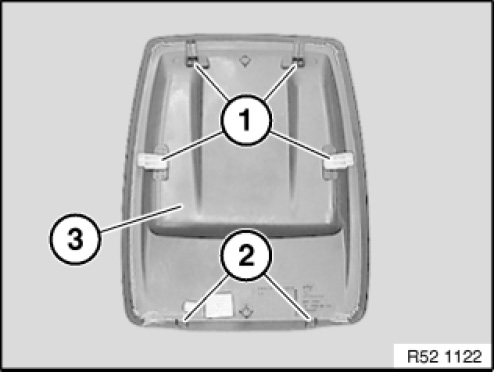 Retaining hooks (1) and bore holes (2) on rear panel (3) must not be damaged.