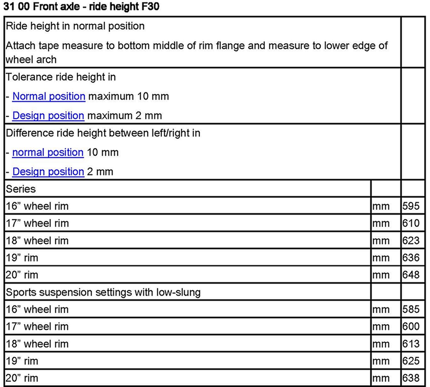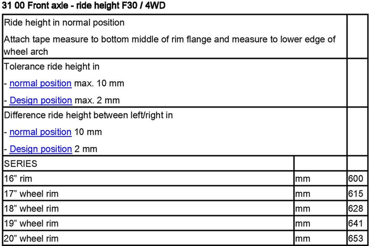 31 00 Front Axle Ride Height F30
