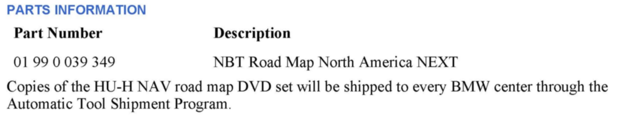 As a backup to this process, a set of DVD copies of the navigation system road map database is shipped to all BMW centers through the automatic tool shipment program with each release of a navigation system road map database.