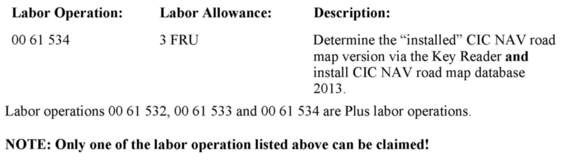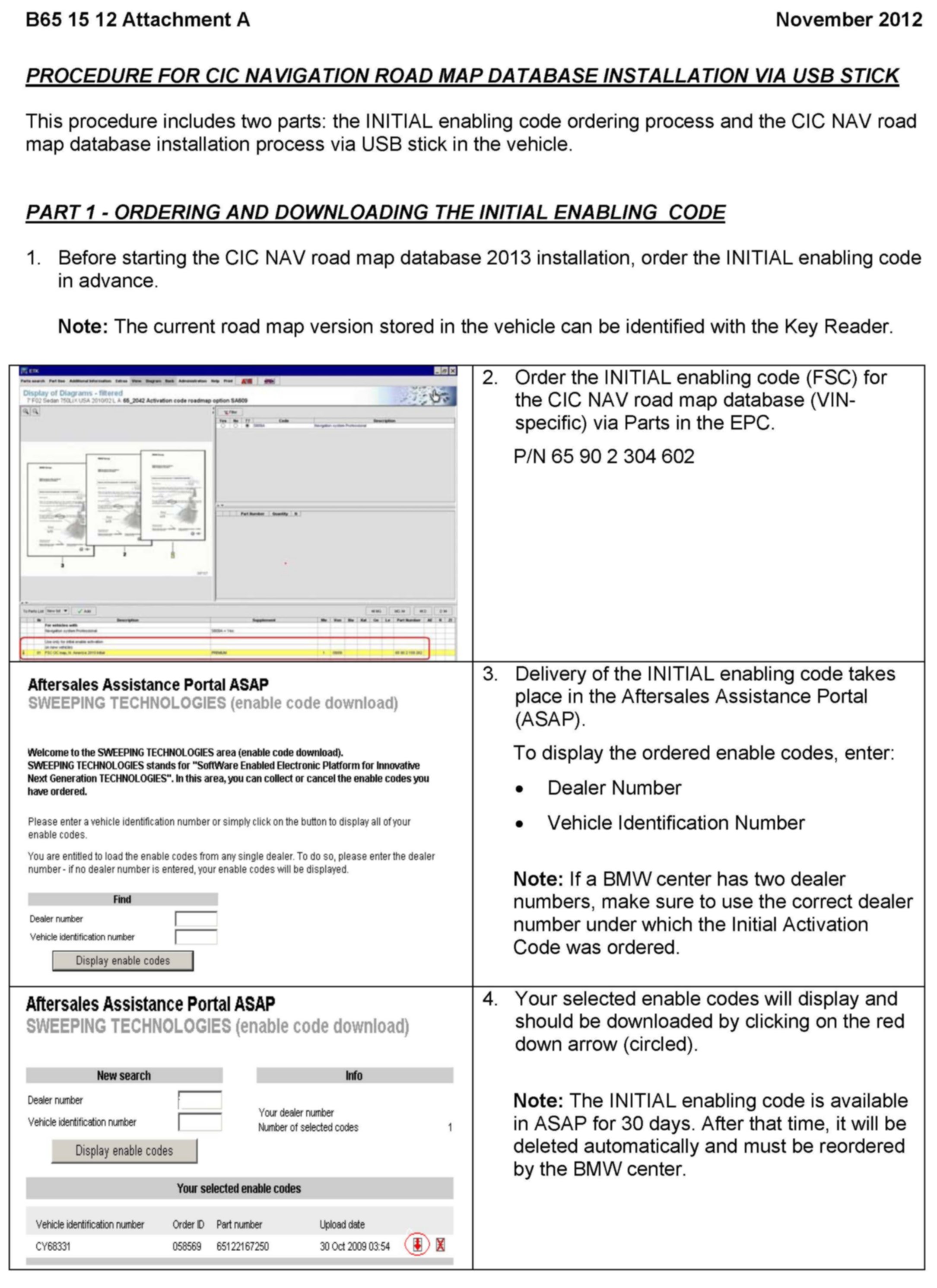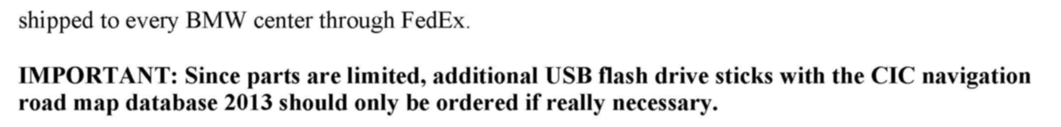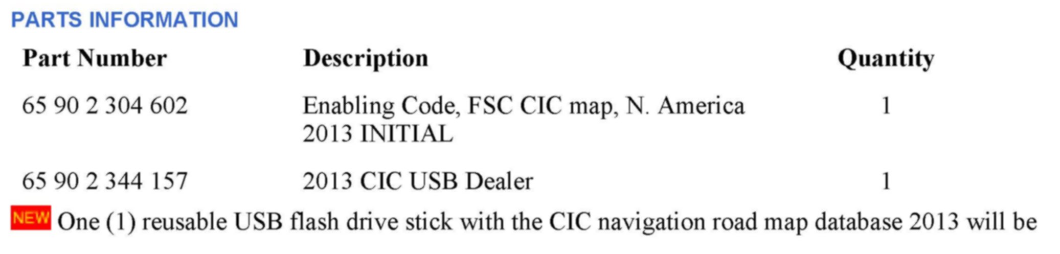If the INITIAL enabling code "FSC CIC map, N. America 2012 INITIAL" was already ordered and downloaded in ASAP, or the CIC NAV road map database 2012 has already been activated in an affected vehicle: