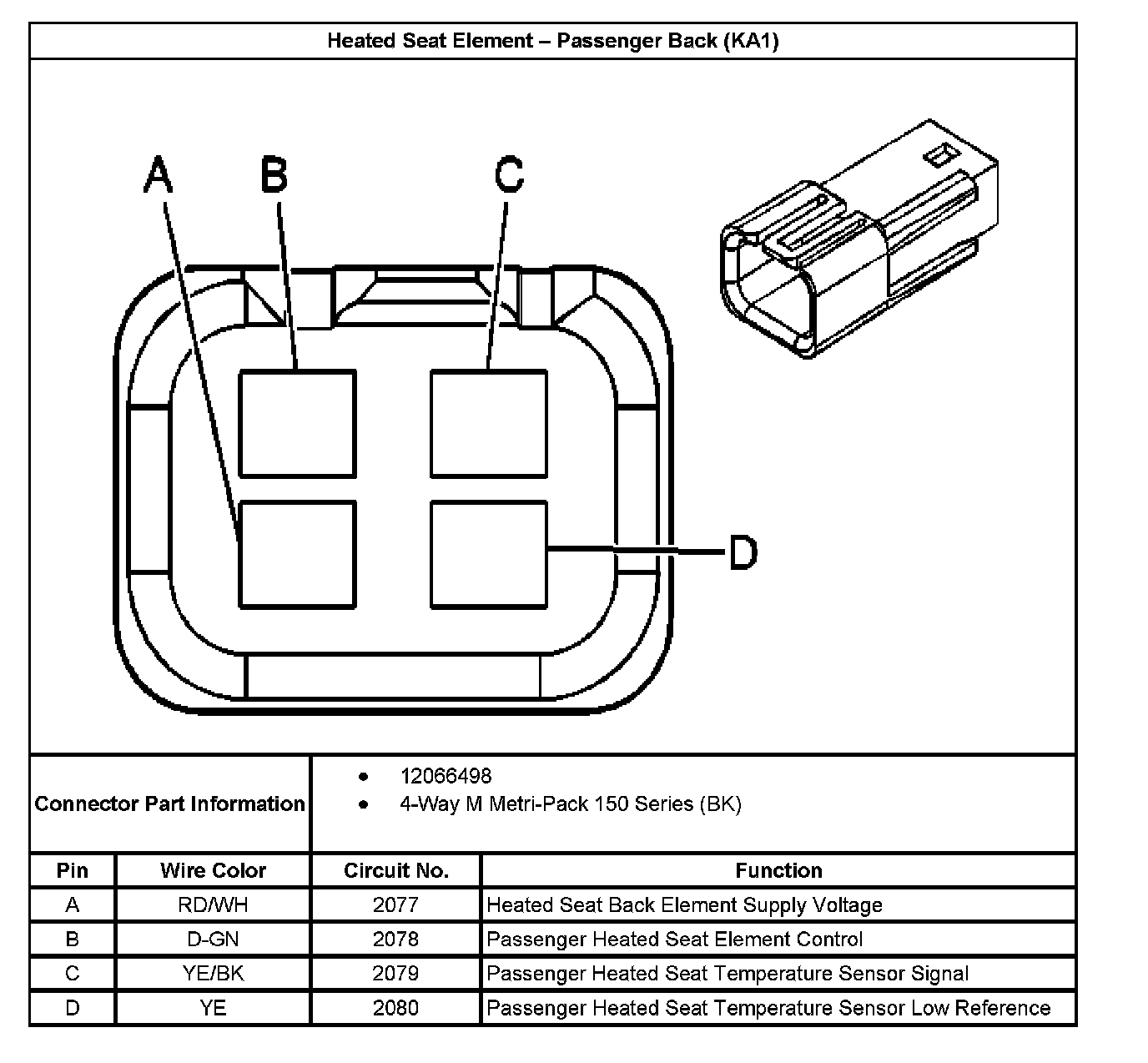Heated Seat Element - Passenger Back (With RPO Code KA1):