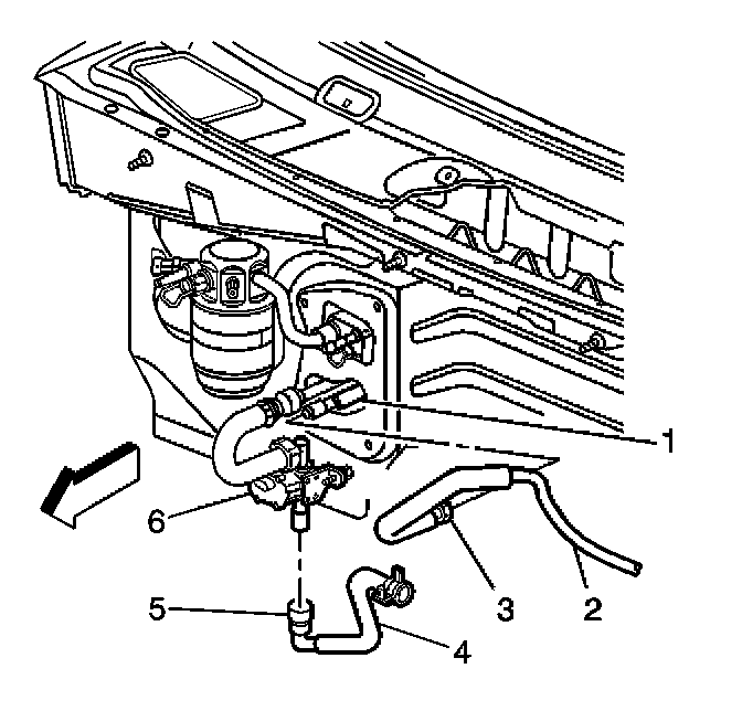 3.1. Install the J 43181 to the quick connect on the outlet heater core hose (2).