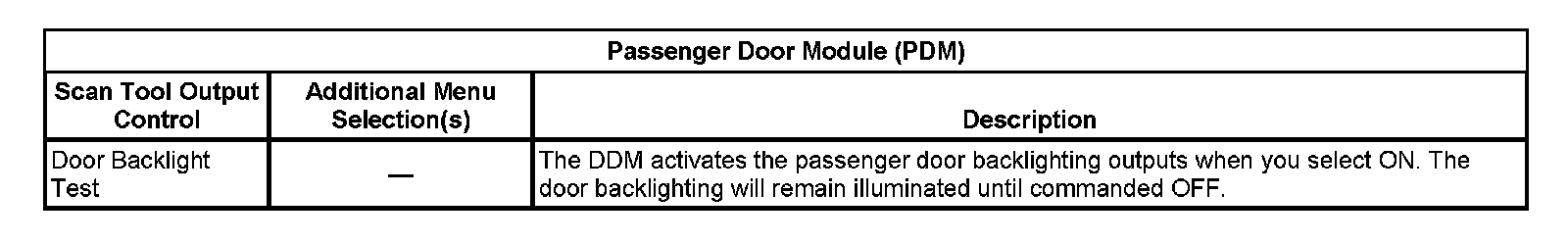 Scan Tool Output Controls - Passenger Door Module (PDM)