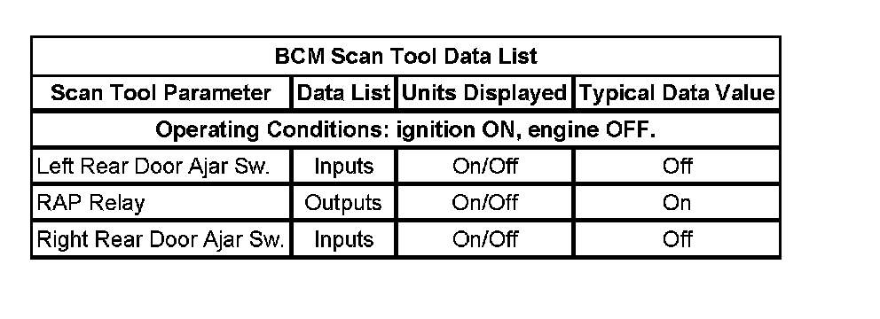 BCM Scan Tool Data List: