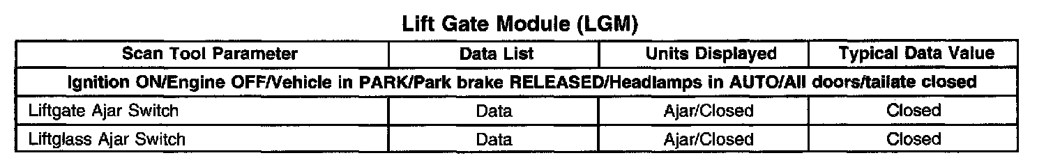 Scan Tool Data List - Lift Gate Module (LGM):
