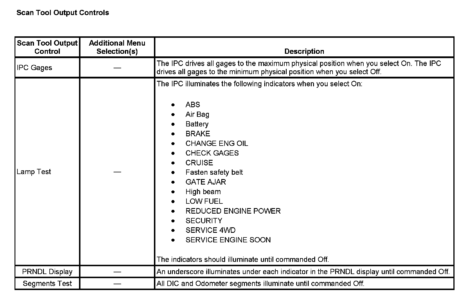 Scan Tool Output Controls: