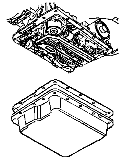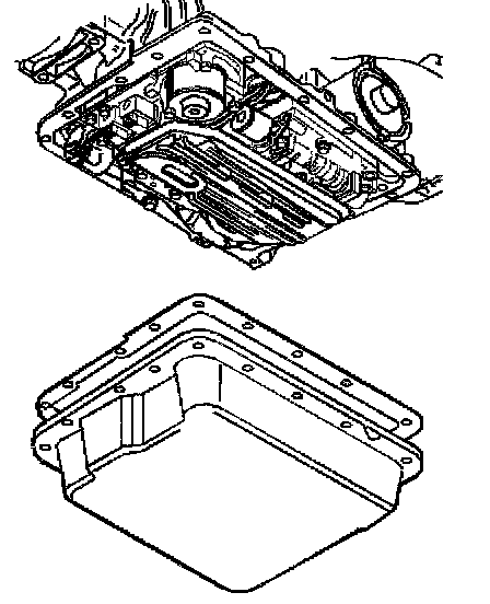 15. Clean the transmission case and the oil pan gasket surfaces with solvent, and air dry. You must remove all traces of the old gasket material.