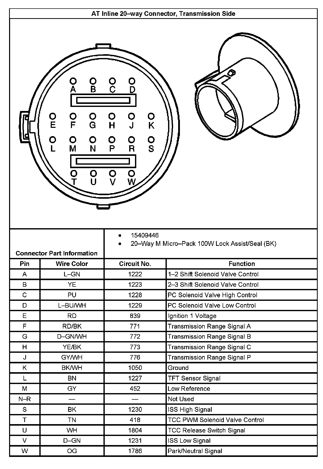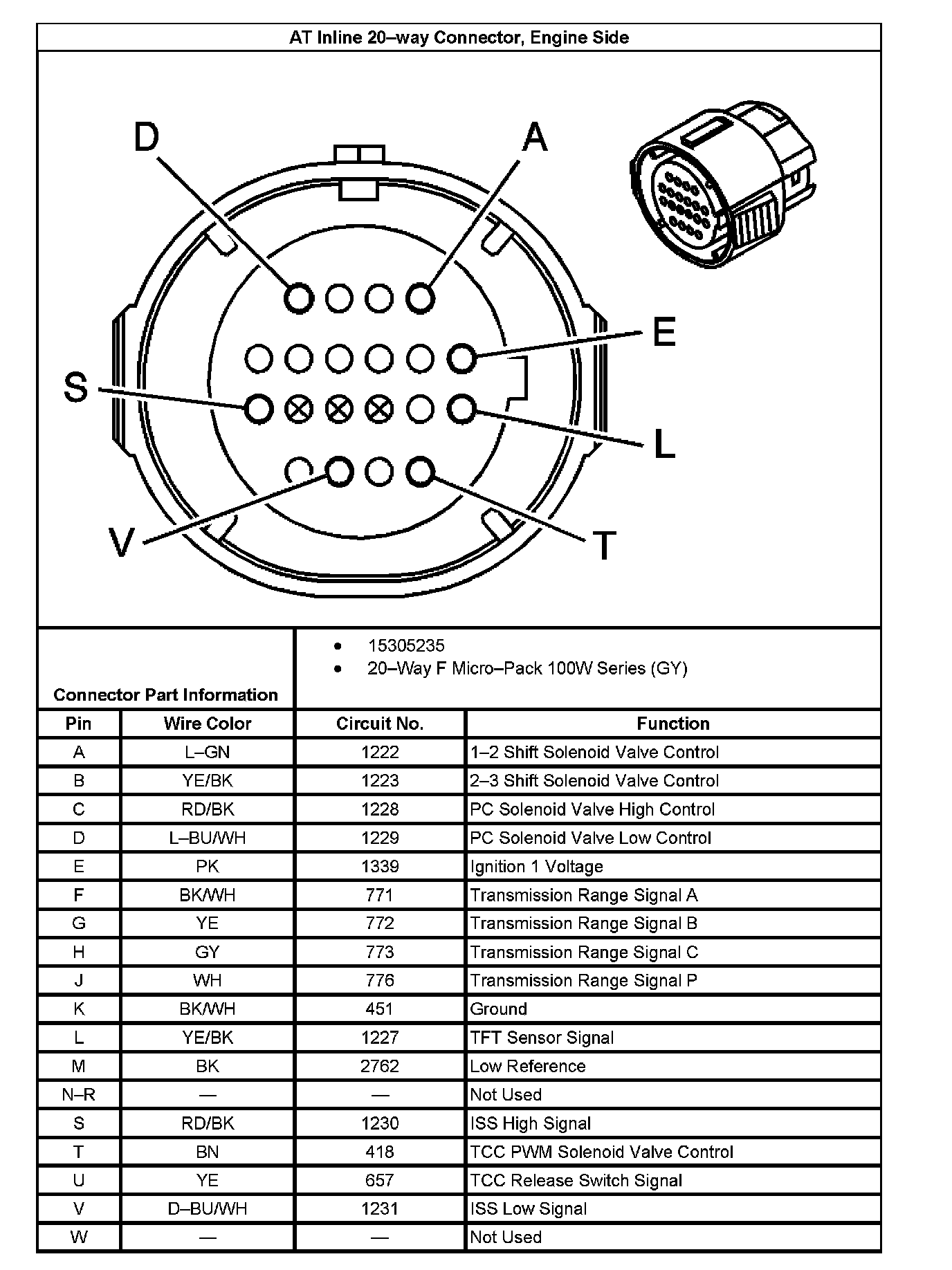 Automatic Transmission Inline 20-Way Connector End View (3.4L)