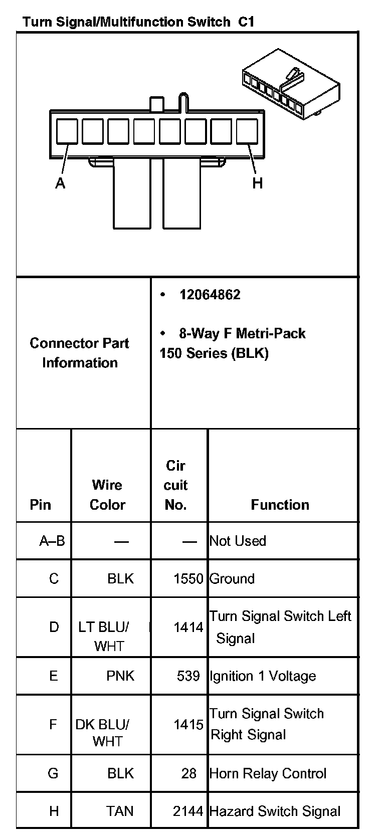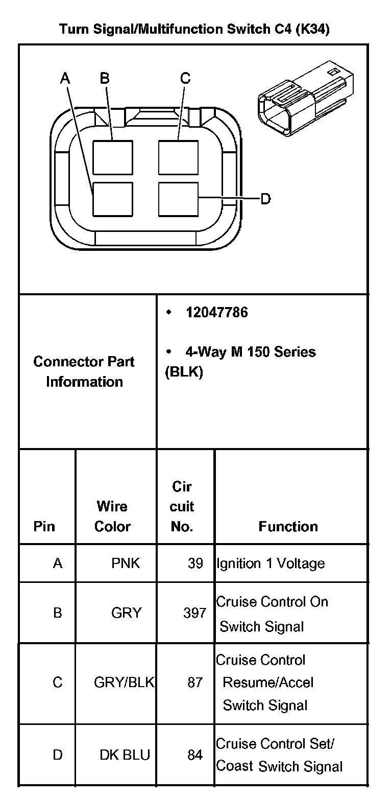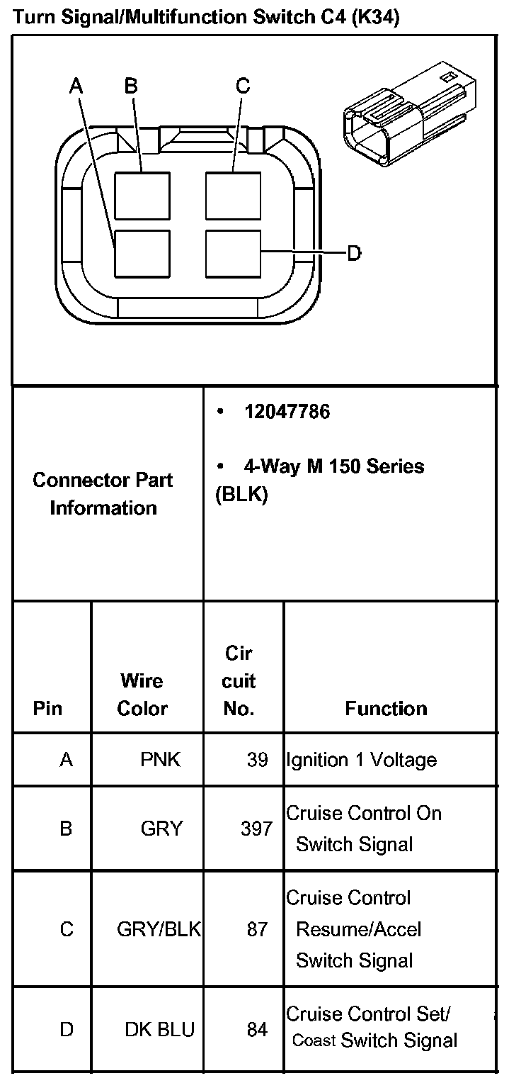 Turn Signal/Multifunction Switch C4 (With RPO Code K34):