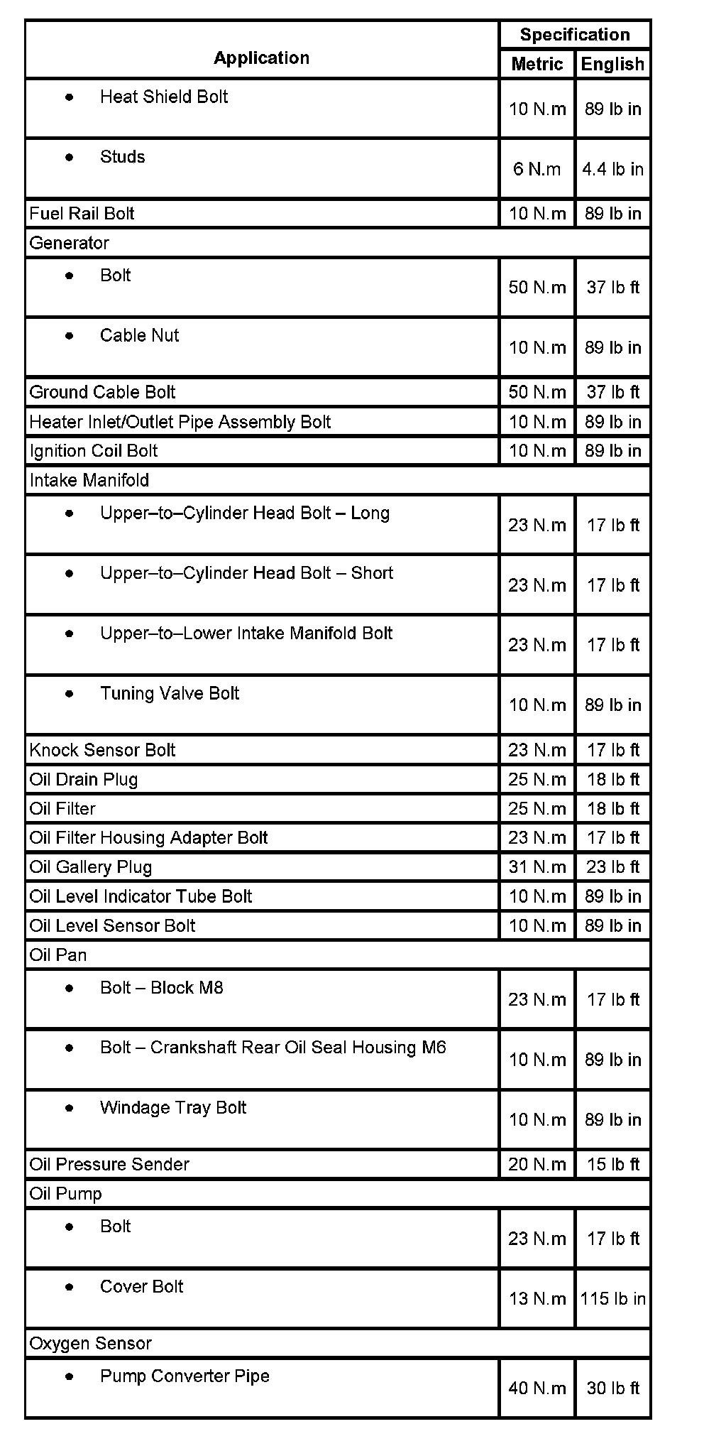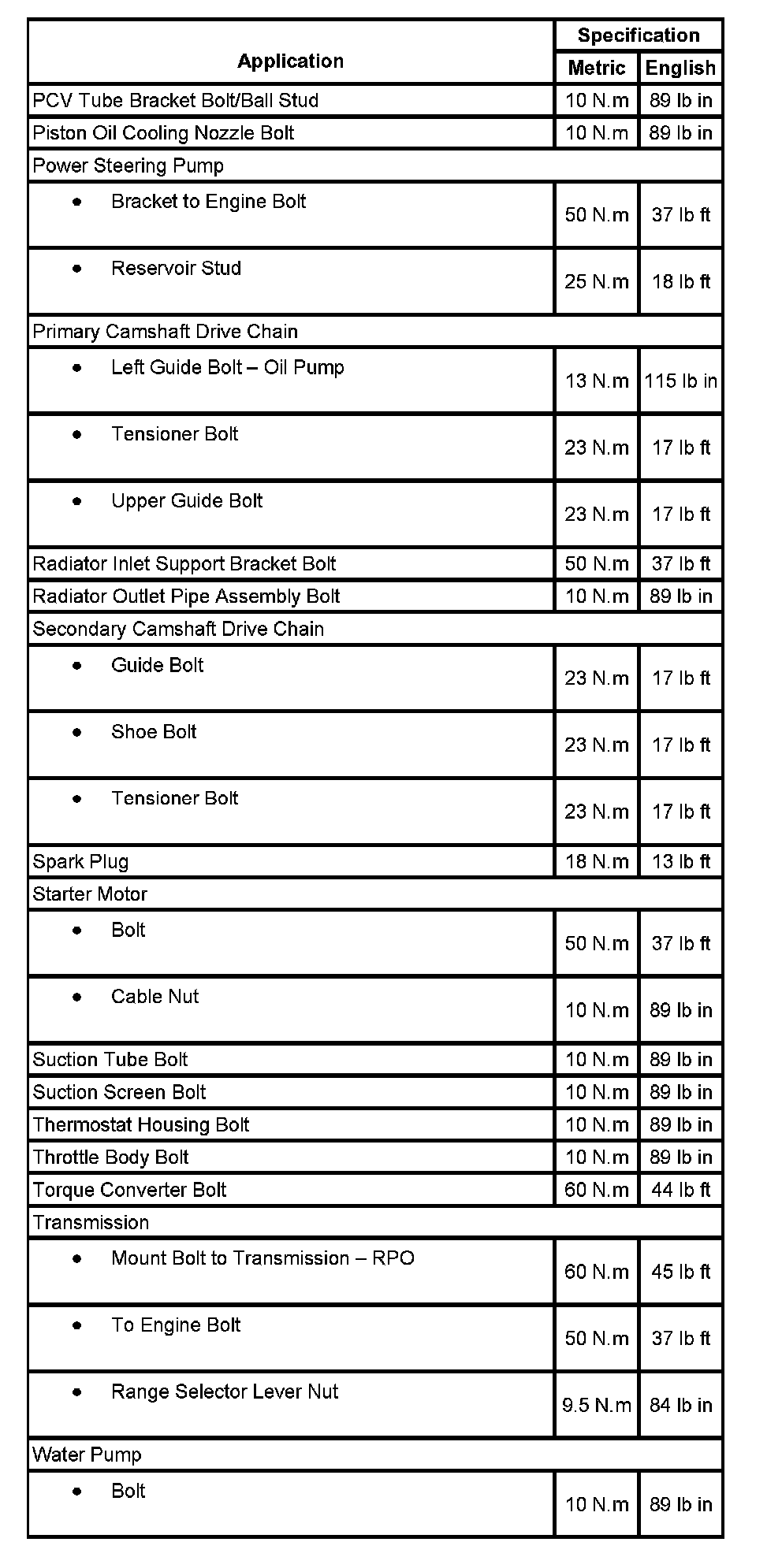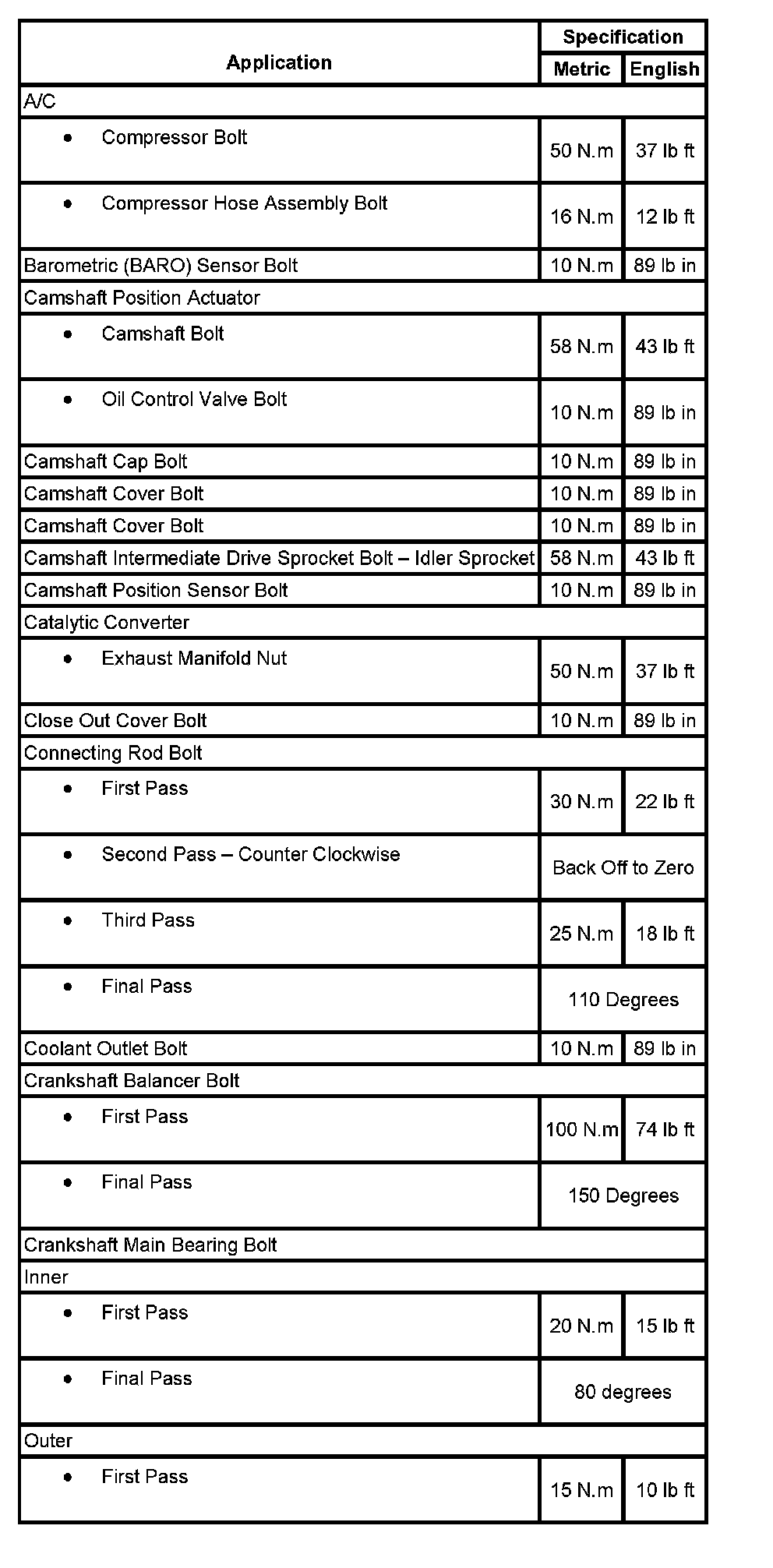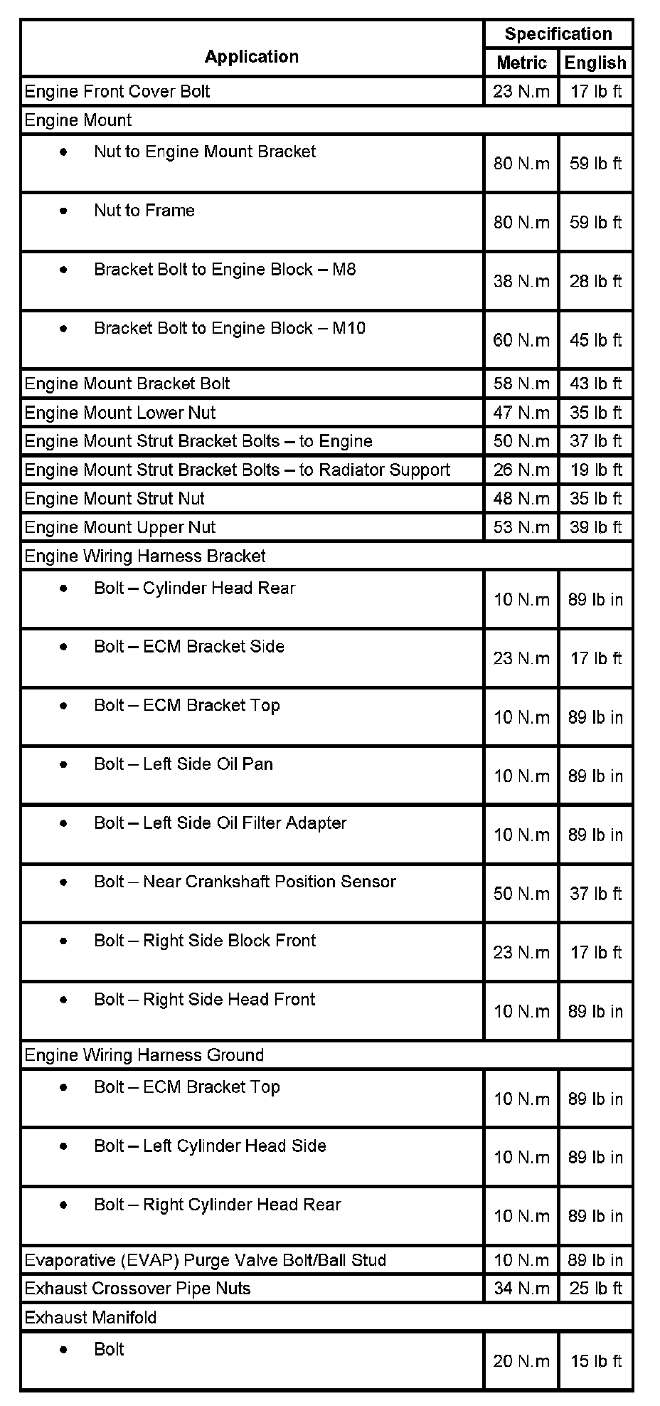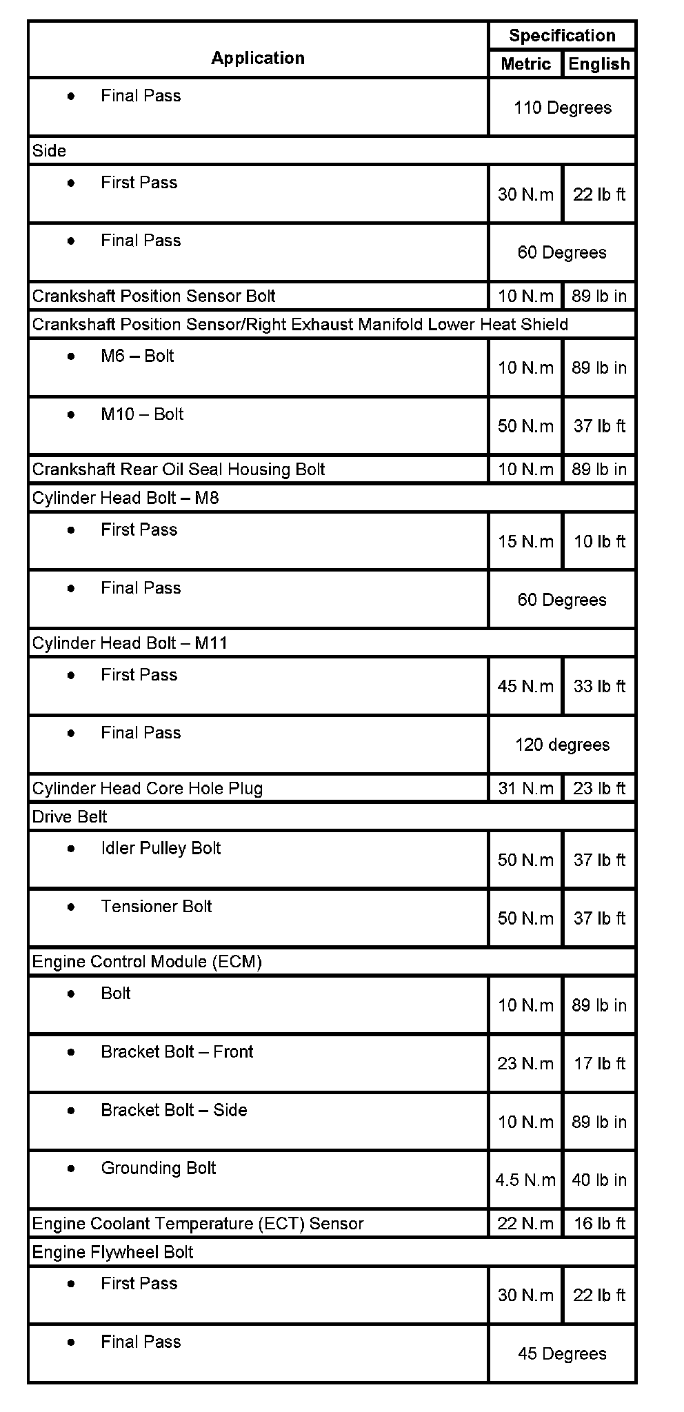 Torque Specifications