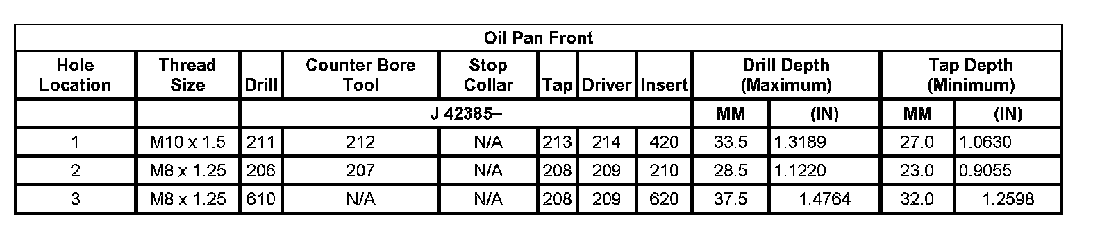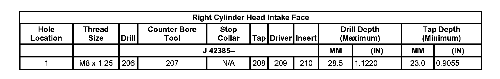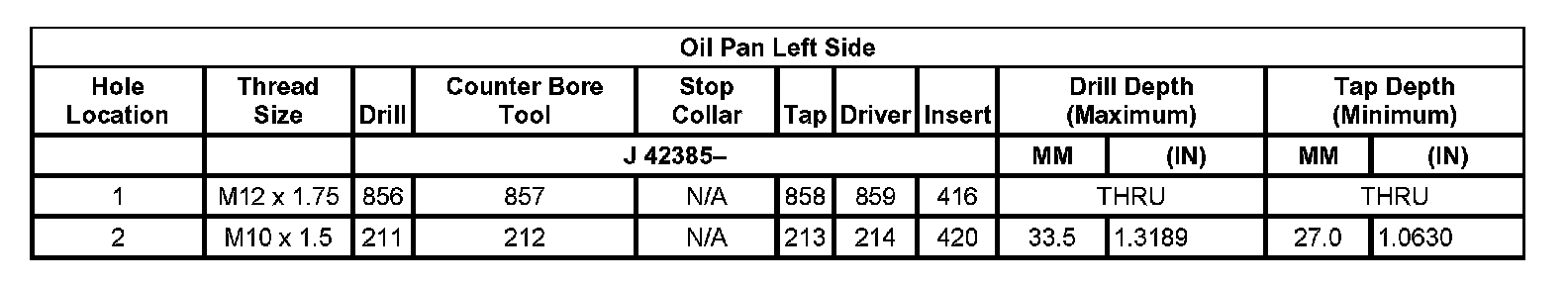 Thread Repair SpecificationsLeft Cylinder Head Camshaft Cover Face