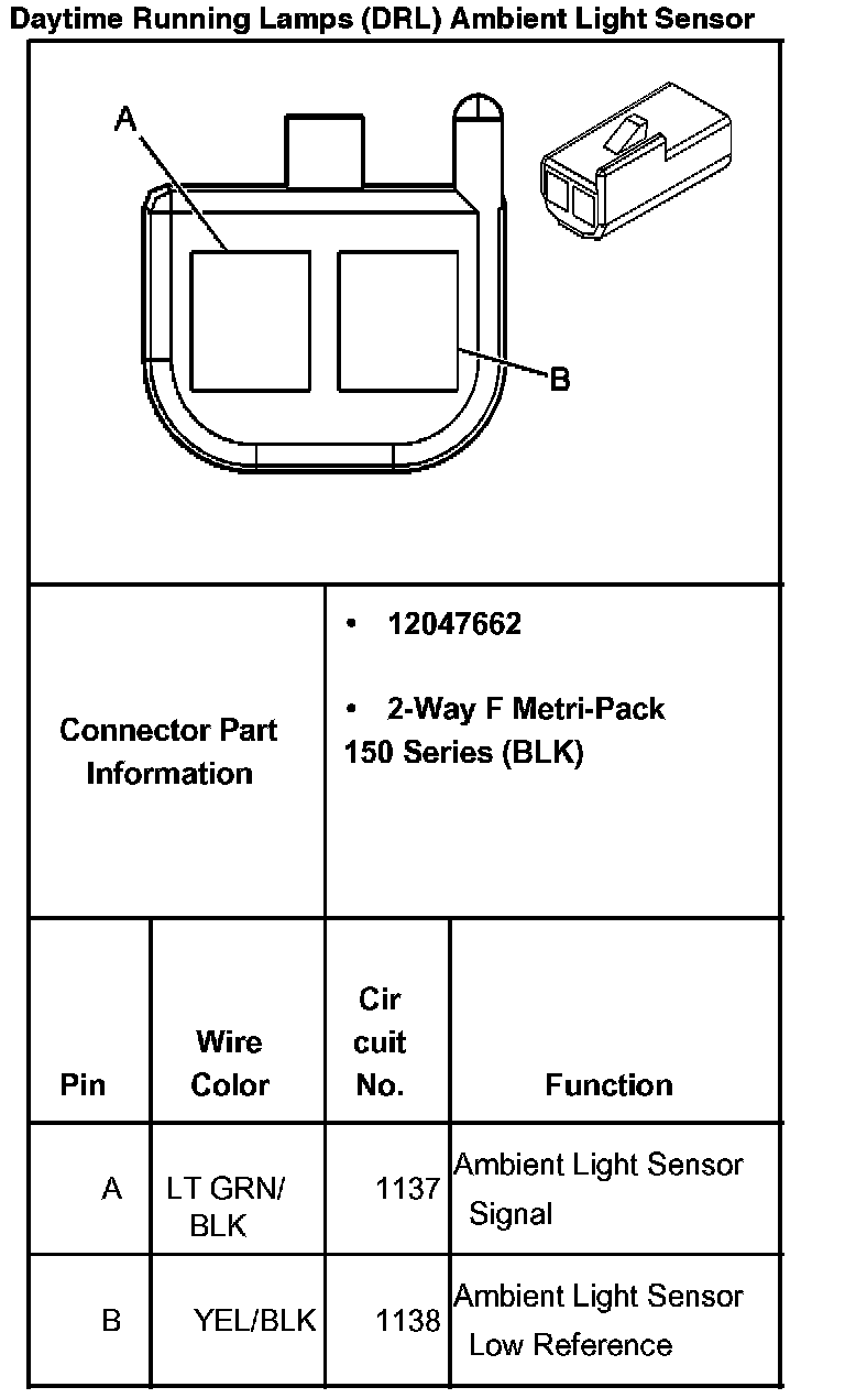 Daytime Running Lamps (DRL) Ambient Light Sensor: