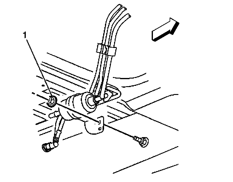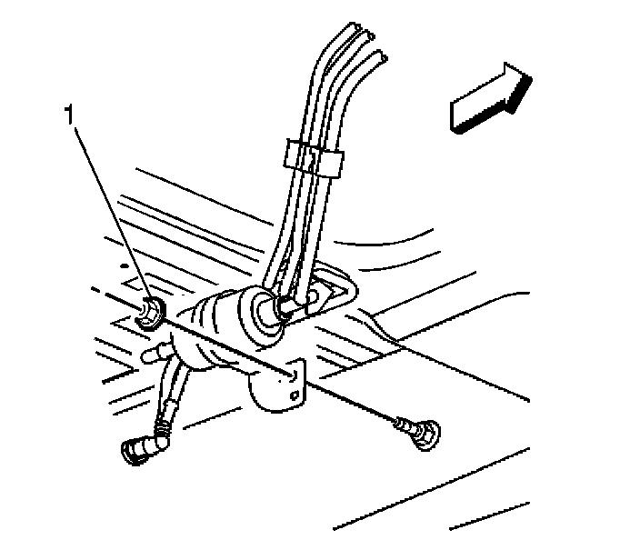 5. Install the in-pipe fuel filter mounting bracket retaining nut (1).