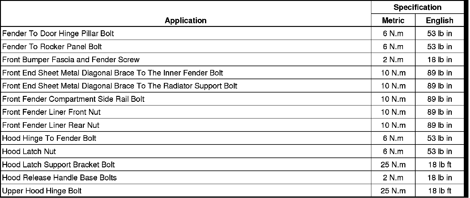 Fastener Tightening Specifications