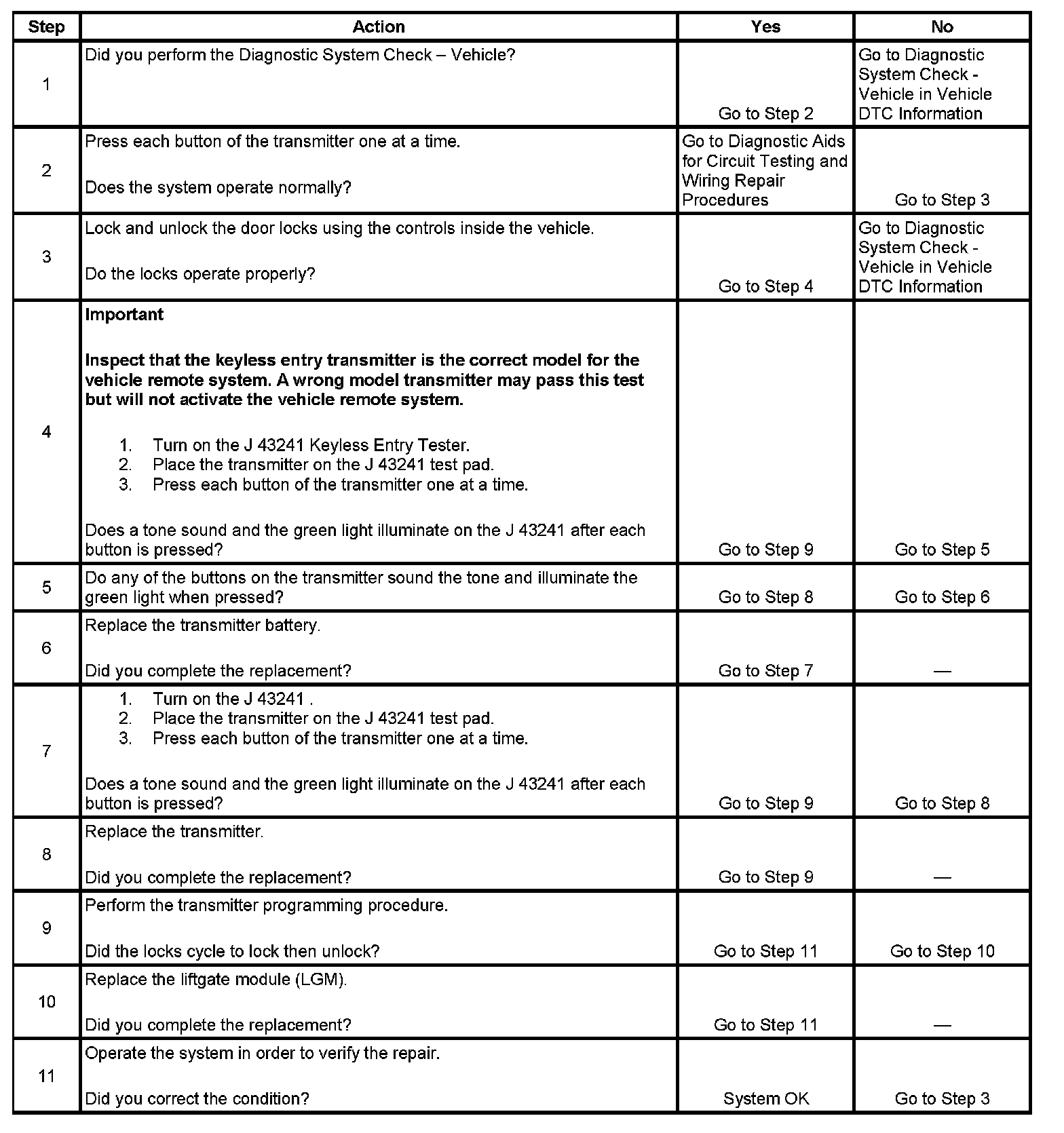 Keyless Entry System Inoperative