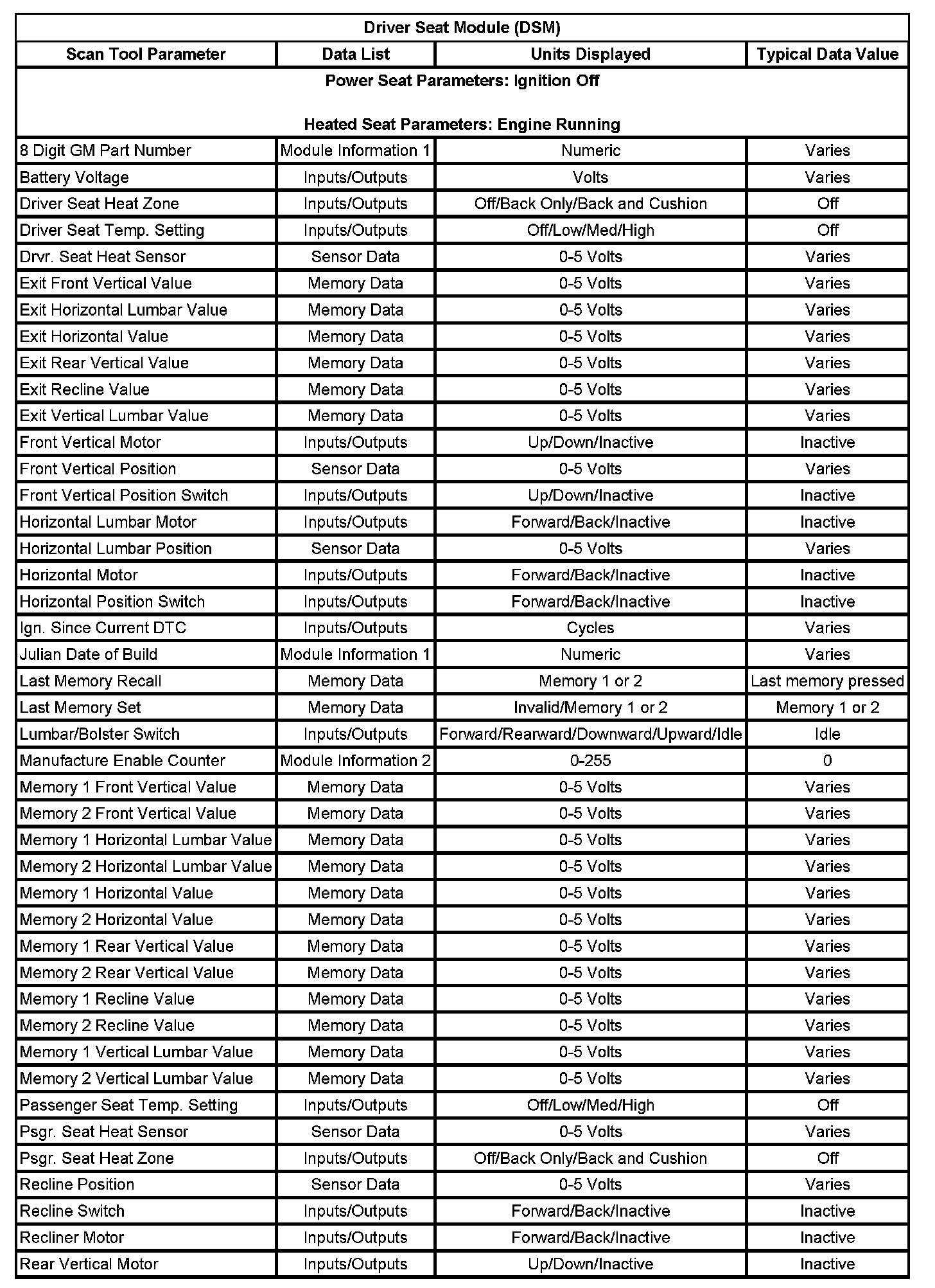 Driver Seat Module (DSM) Part 1: