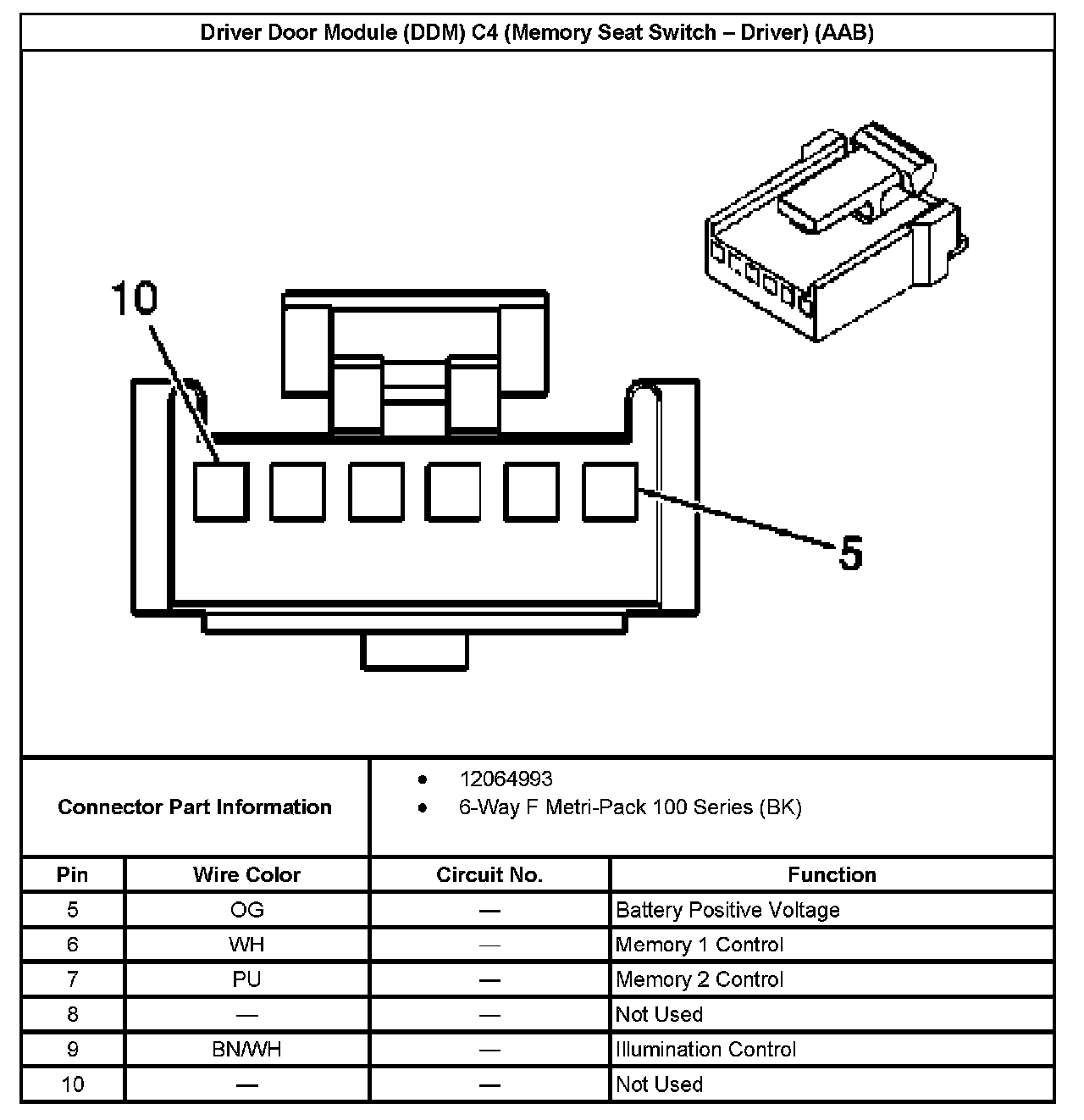 Driver Door Module (DDM) C4 (Memory Seat Switch - Driver) (With RPO Code AAB):