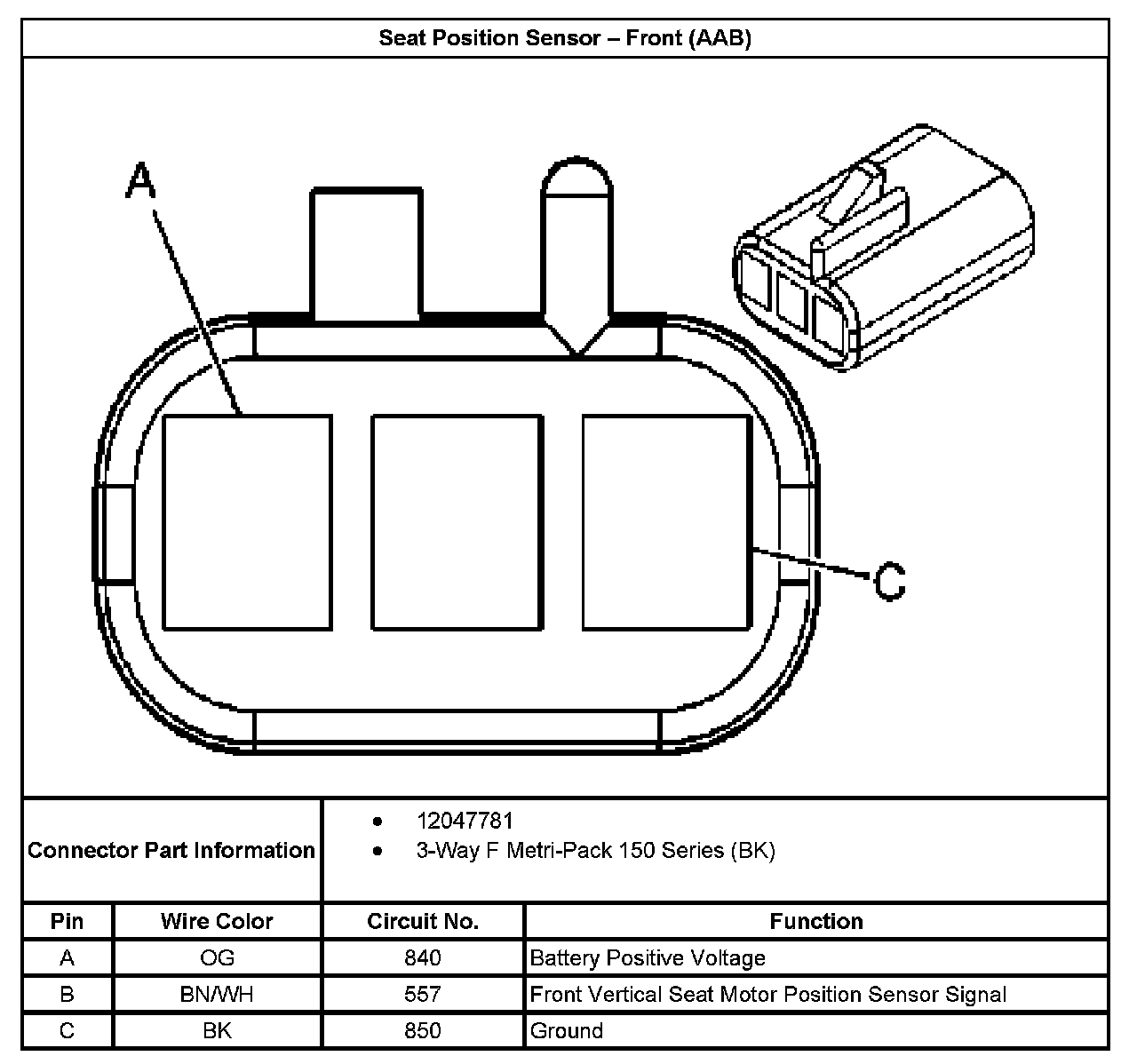 Seat Position Sensor - Front (With RPO Code AAB):