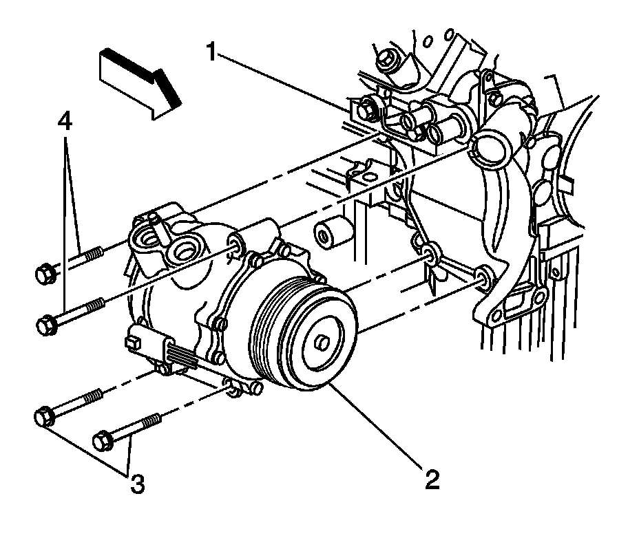 5. Install the upper compressor mounting bolts (4) into the compressor and bracket assembly.