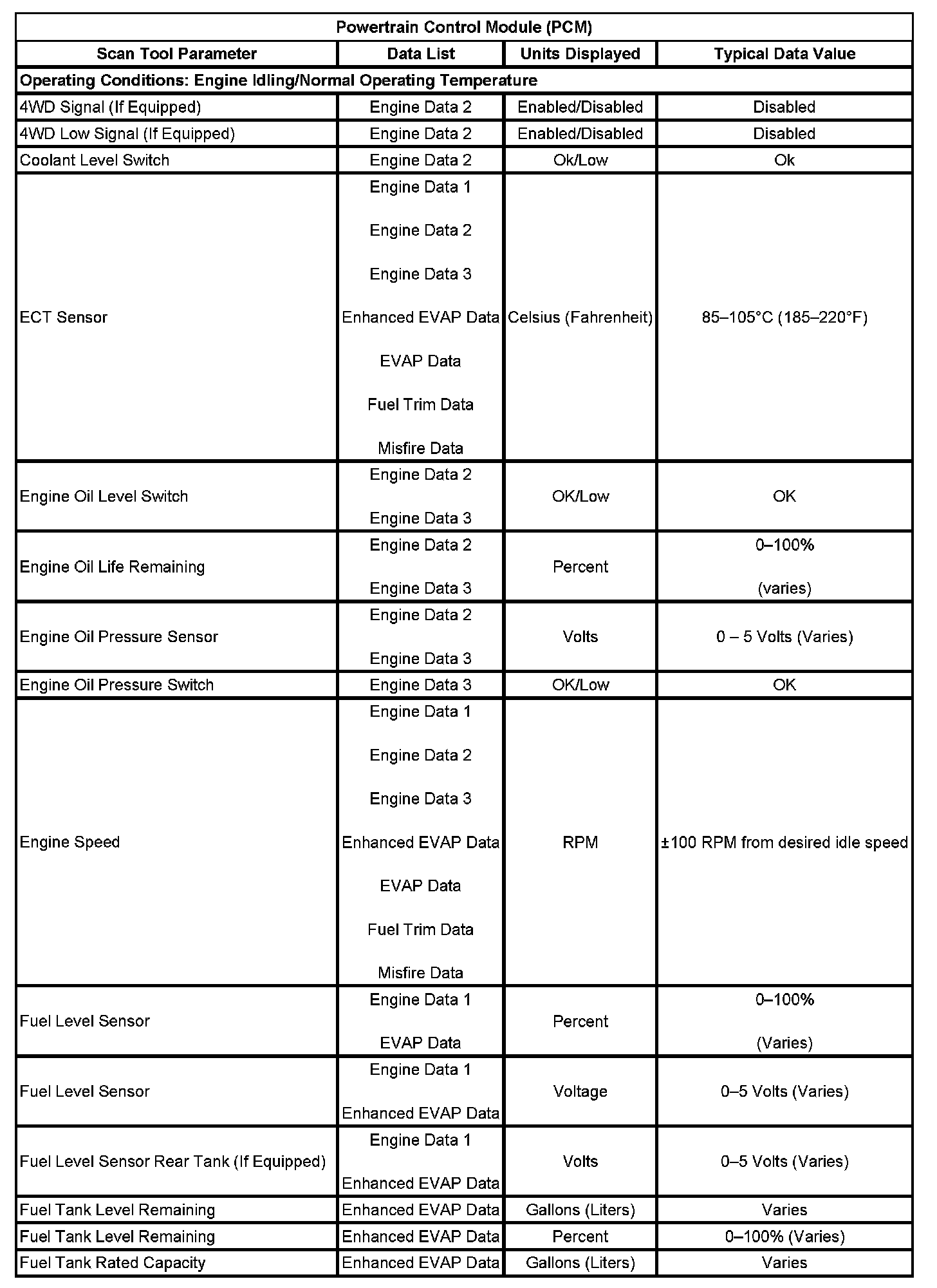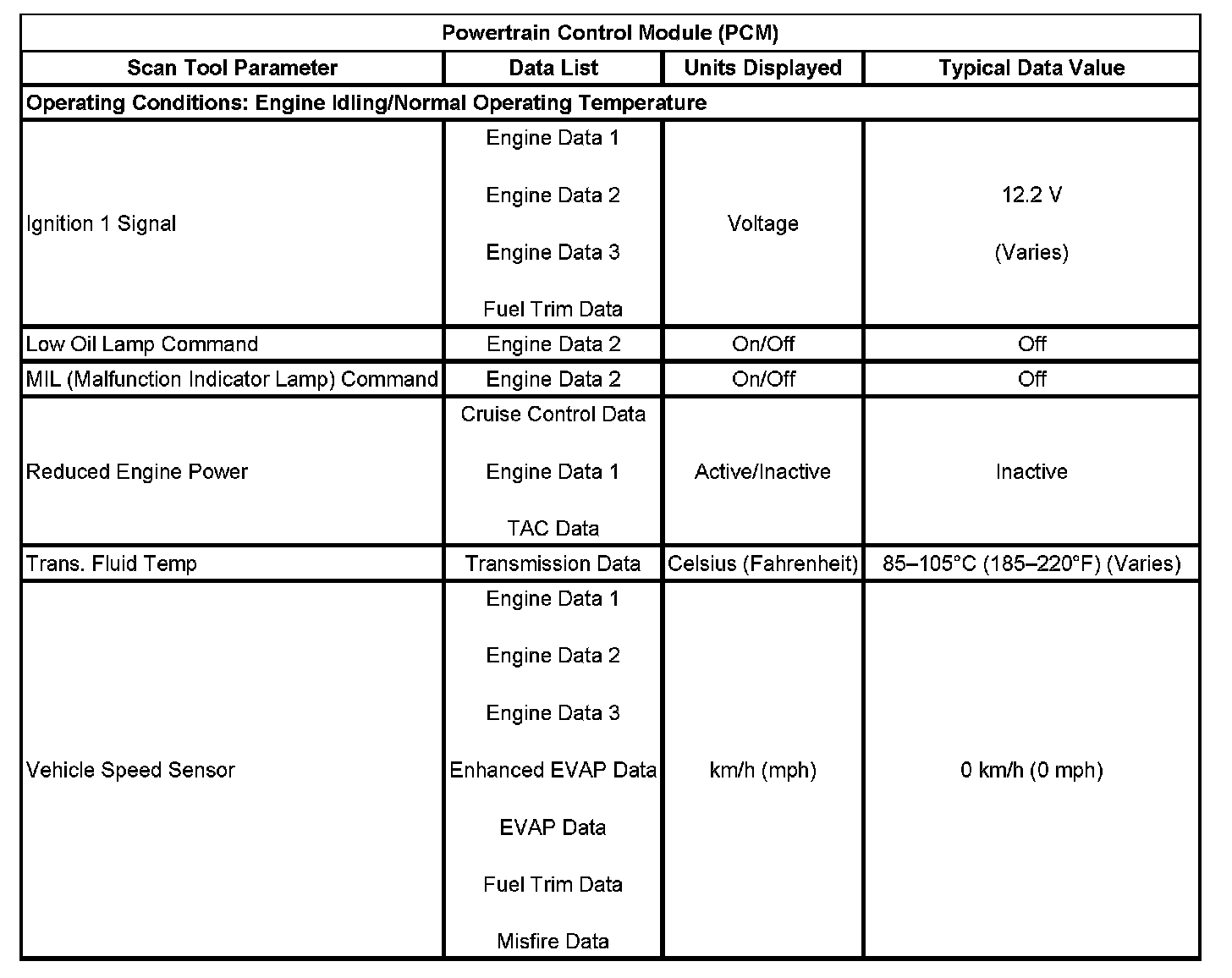 Scan Tool Data List - Powertrain Control Module (PCM)