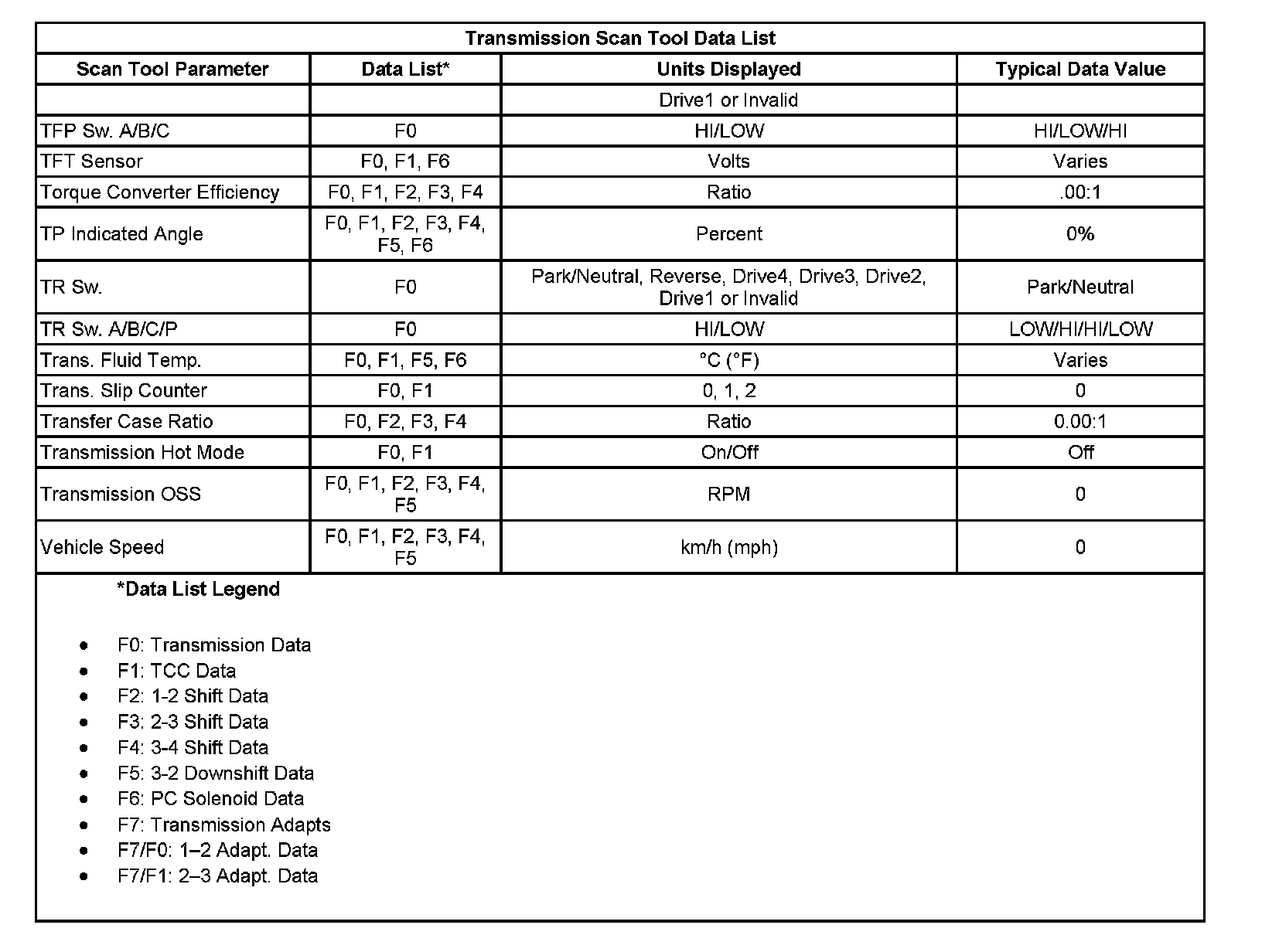 Scan Tool Data List