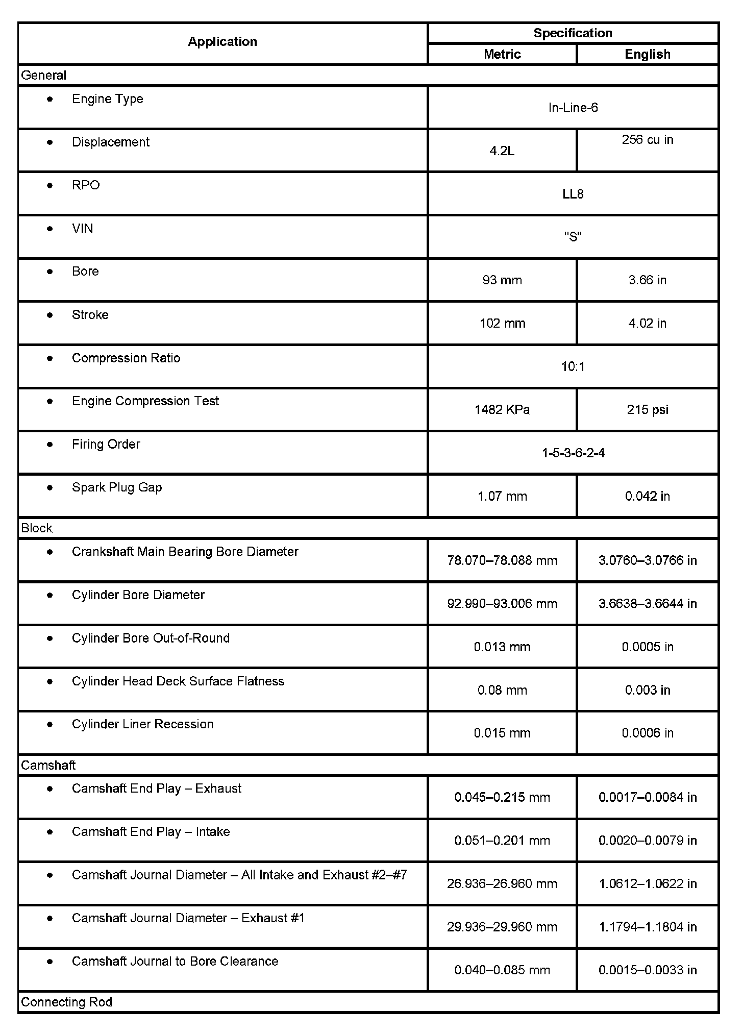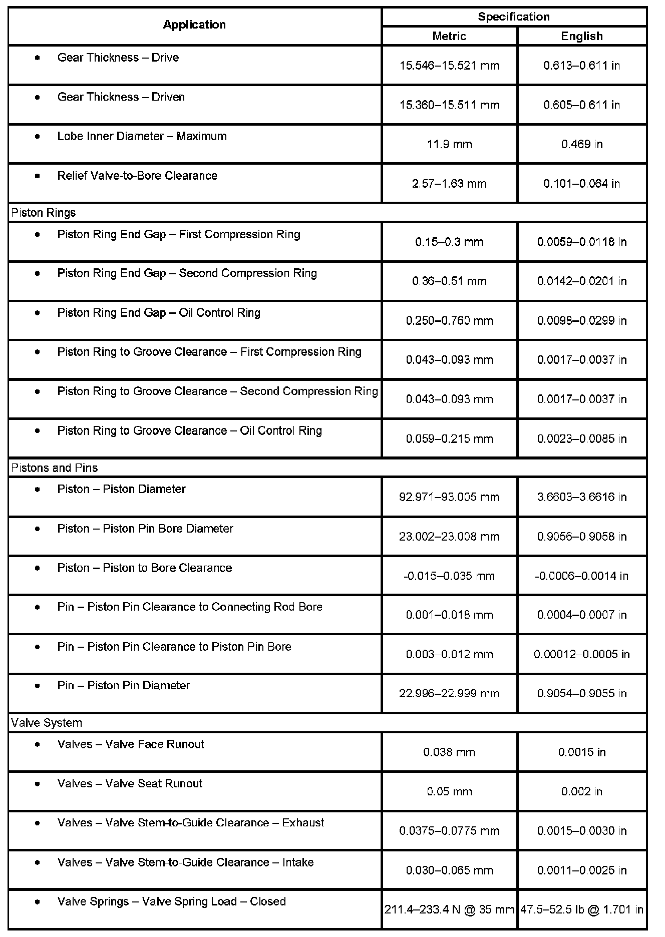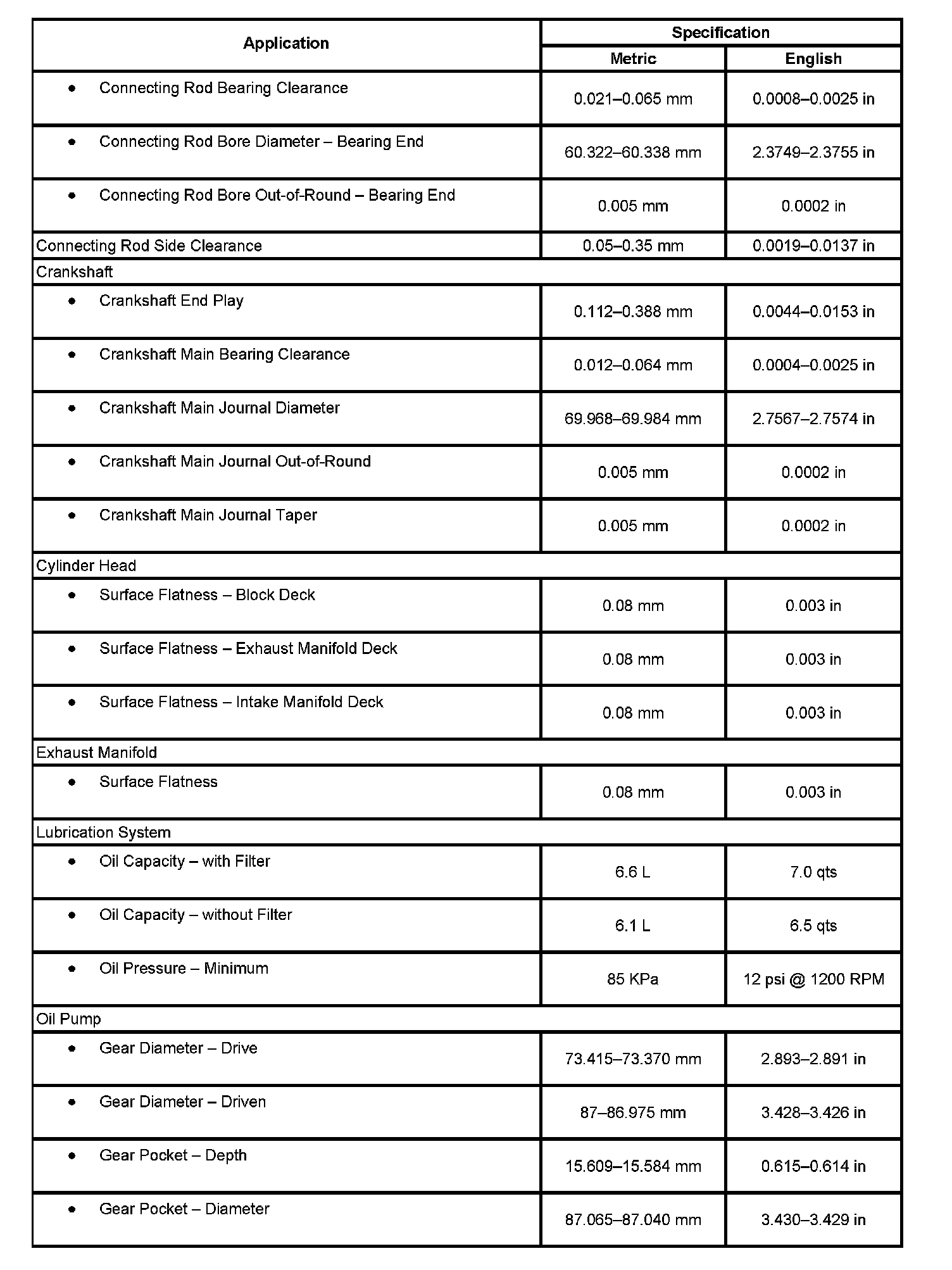 Engine Mechanical Specifications