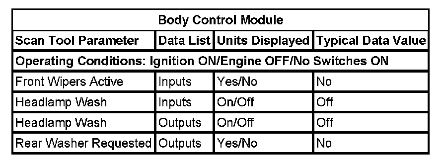 Scan Tool Data List - Body Control Module (BCM)