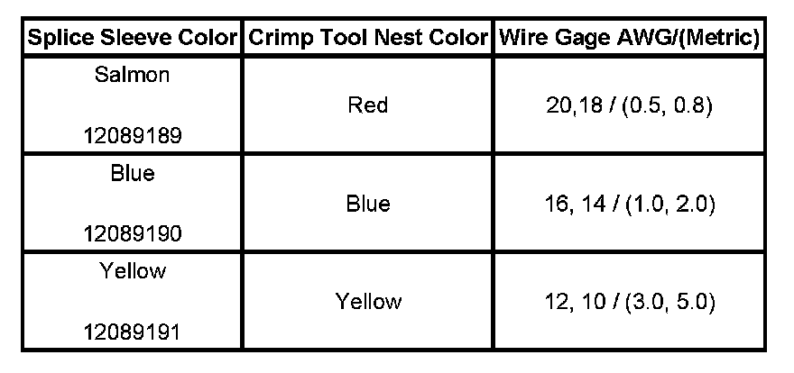 5. Select the proper duraseal splice sleeve (2) and the required crimp nest tool, refer to the Crimp and Seal Splice Table.