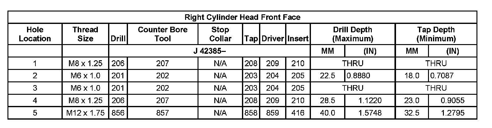 Right Cylinder Head Front Face:
