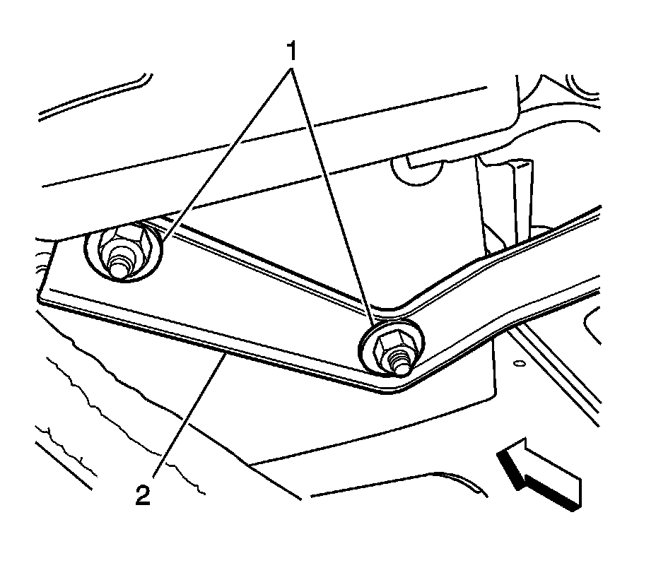 5. Remove the 2 nuts (1) securing the I/P accessory wiring junction block assembly bracket (2) to the I/P carrier.