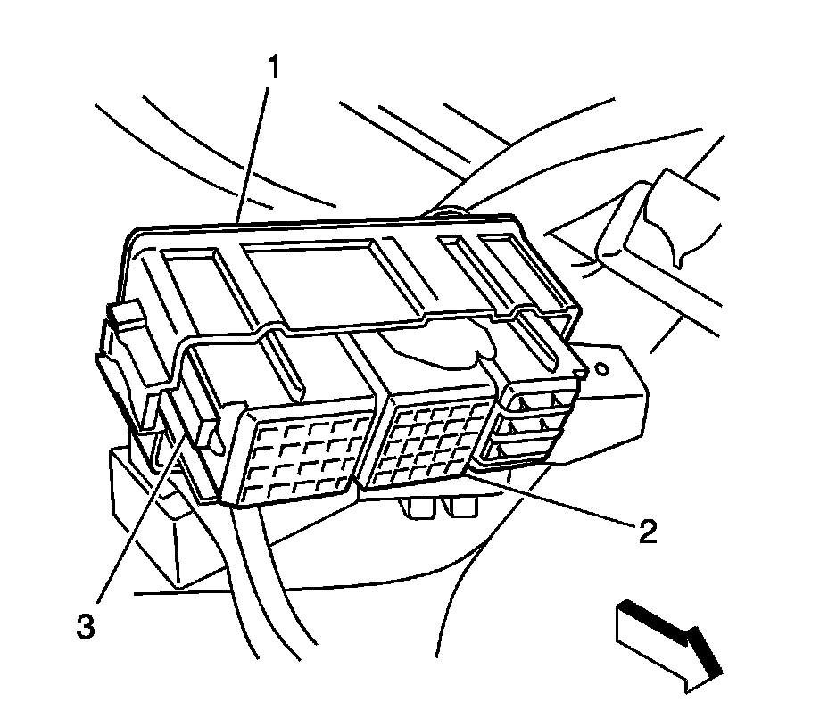 IMPORTANT: Re-stage the connectors (2) into the lower I/P accessory wiring junction block assembly base/shroud (1) prior to installing the new I/P wiring harness junction block.