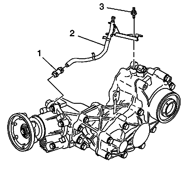 4. Remove the speed sensor / vent hose bolt (3) from the transfer case.